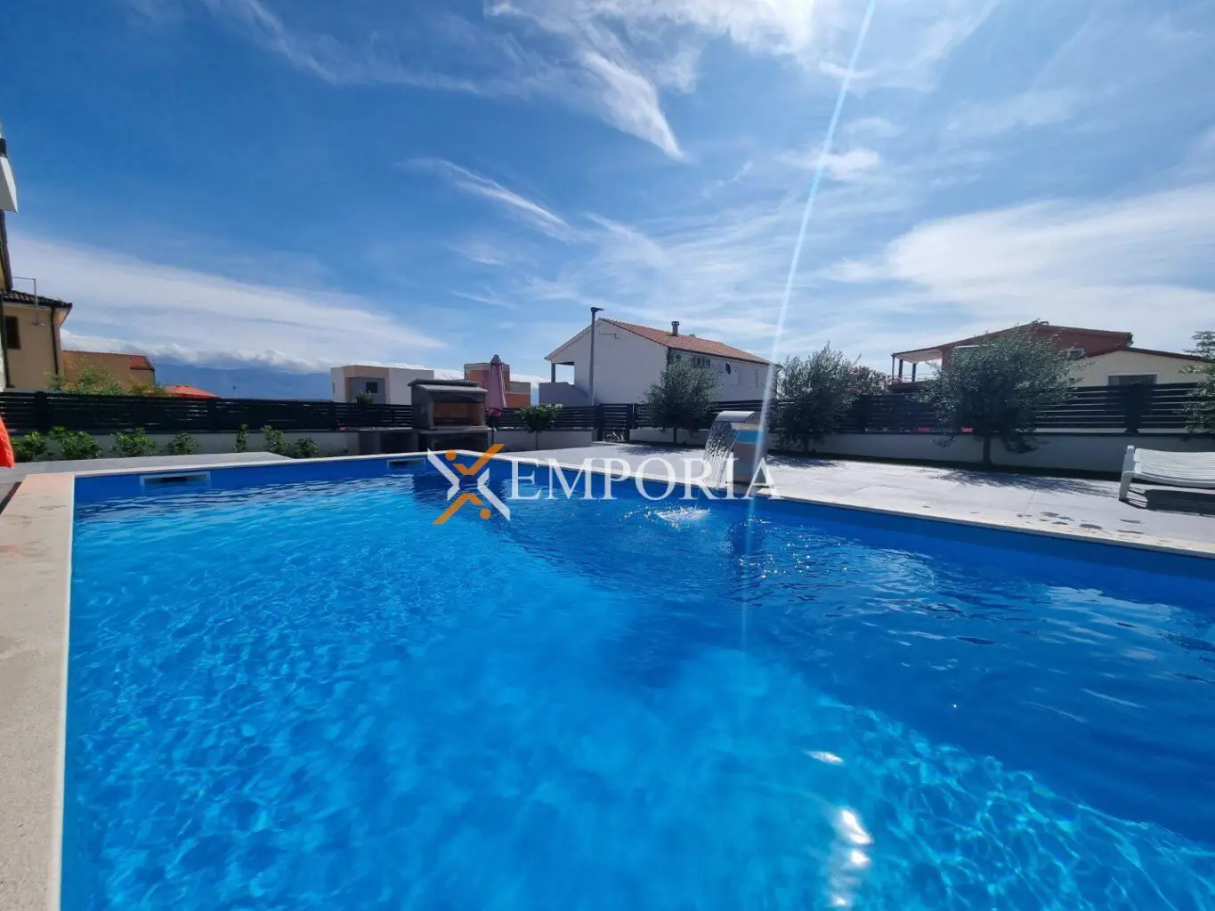 Baujahr 2022. Bauweise mit Thermoziegelsteinen. Fassadenwärmedämmung 10 cm Styropor. PVC-Fenster mit Rollläden, Moskitonetzen und dreifach verglastem Glas. Bodenbeläge sind Fliesen. Insgesamt 6 Klimaanlagen im Haus, d.h. im Wohnzimmer und in jedem Schlafzimmer. Schwimmbecken mit Folie und Vorbereitung zum Heizen. Im Hof eine Außendusche, Bewässerung und schöne Olivenbäume.