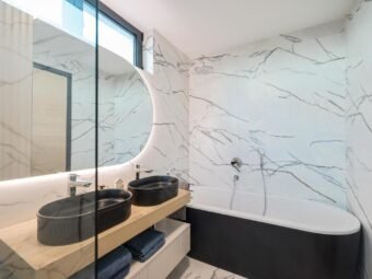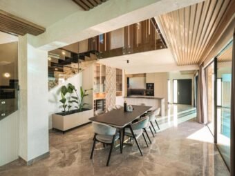 Haus besteht aus dem Erdgeschoss und dem 1. Stock. Im Erdgeschoss gibt es Flur, Badezimmer, Küche mit Esszimmer und Wohnzimmer und 2 überdachte Terrassen. Fläche des Erdgeschosses beträgt 147,60 m2. Darüber hinaus gibt es im ersten Stock einen Flur, drei Schlafzimmer mit jeweils eigenem Bad und 2 überdachte Terrassen. Fläche der 1. Etage beträgt 131,59 m2.