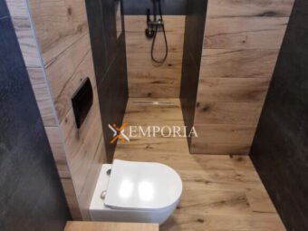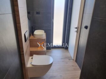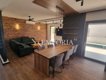 Die Konstruktion erfolgte aus Thermoblöcken mit Wärmedämmung der Fassade aus 10 cm Styropor. Die Fenster sind aus PVC mit dreischichtigem Glas und Moskitonetzen. Bodenbeläge sind Fliesen und Laminat. Darüber hinaus gibt es im gesamten Haus eine elektrische Fußbodenheizung. Weiters, Klimaanlagen befinden sich im Wohnzimmer und in allen Schlafzimmern. Außerdem gibt es einen Grill im Hof des Hauses. Darüber hinaus ist die Haustür einbruchsicher. Das Haus wird vollständig möbliert verkauft.