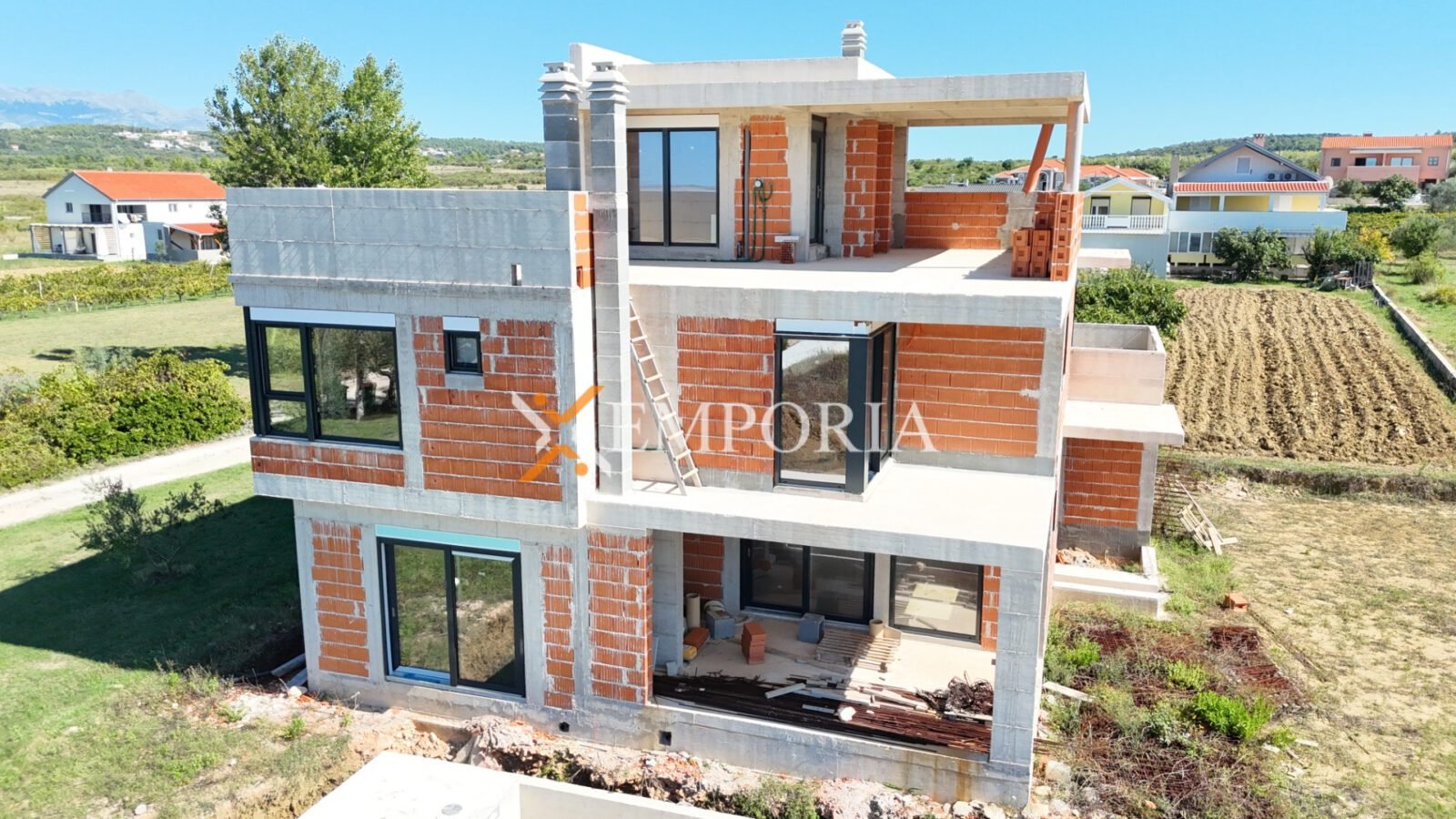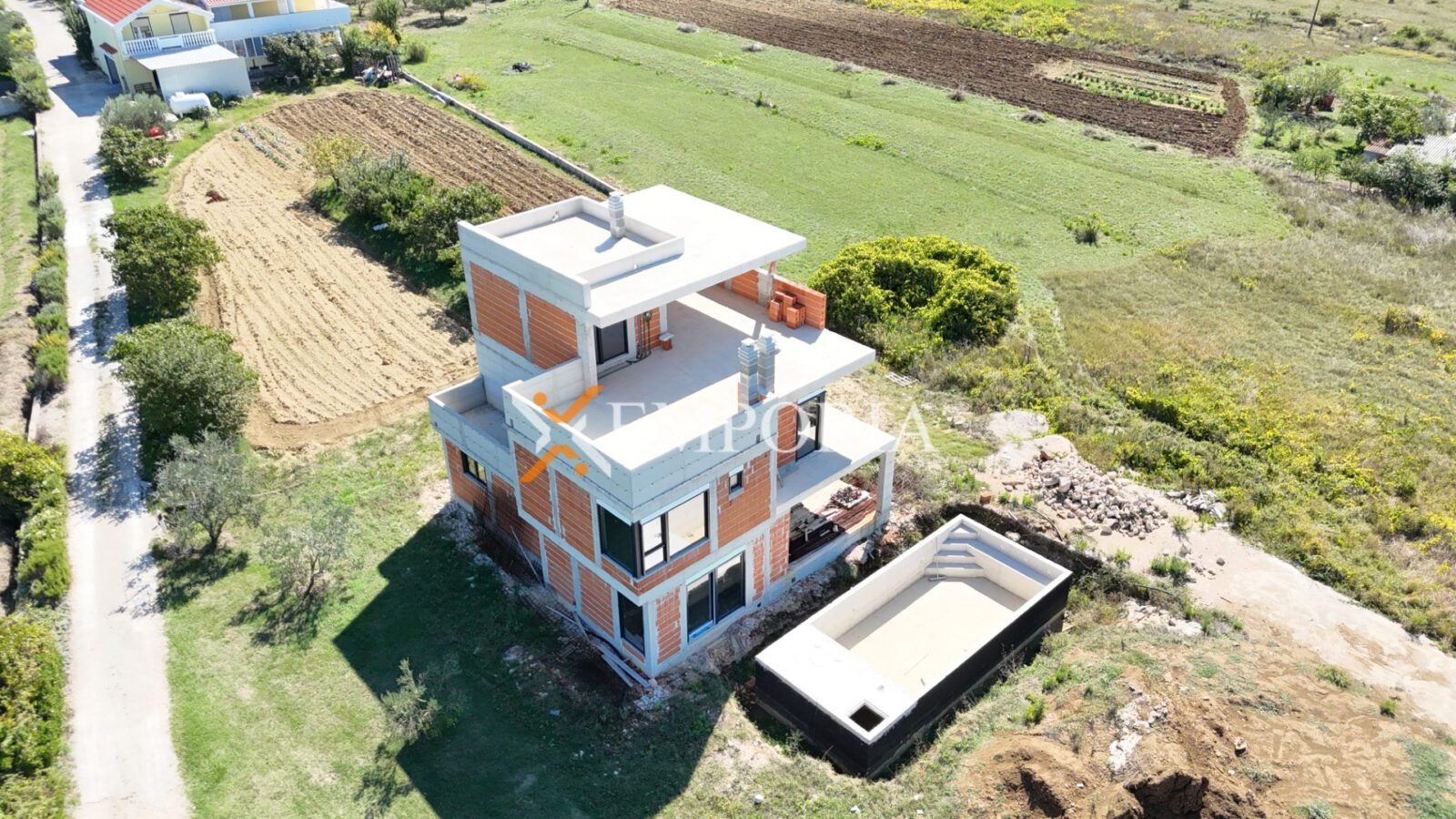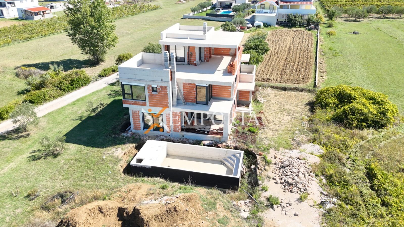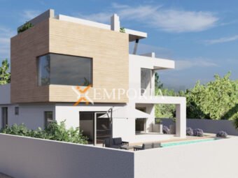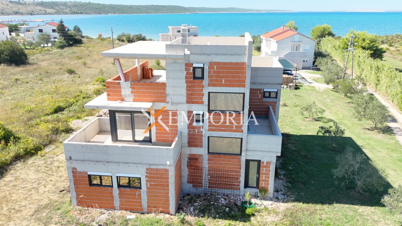 Ein Haus mit Schwimmbad in Ljubač steht zum Verkauf. Im Moment ist es möglich, das Haus in der ausgeführten Rohbauphase für den in der Anzeige angegebenen Preis zu kaufen. Das Haus ist nur 140 m vom Meer entfernt und bietet einen hervorragenden Blick auf das Meer.