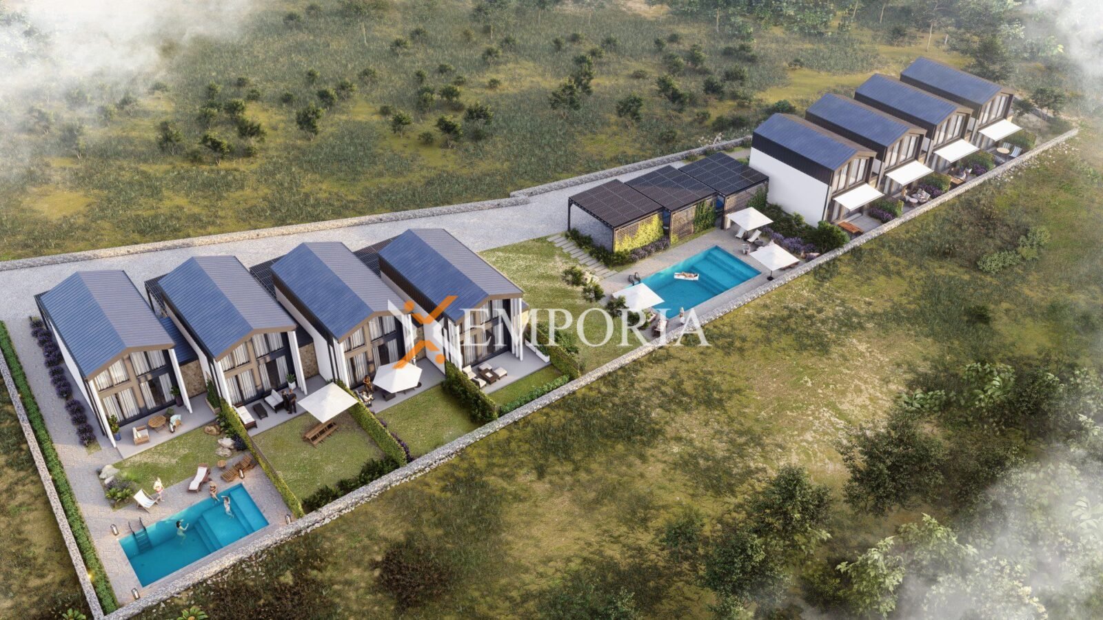 Darüber hinaus wird es einen gemeinsamen beheizten Swimmingpool für 7 Häuser mit einer Fläche von 32 m2 geben. Es wird auch einen gemeinsamen Außengrill geben.