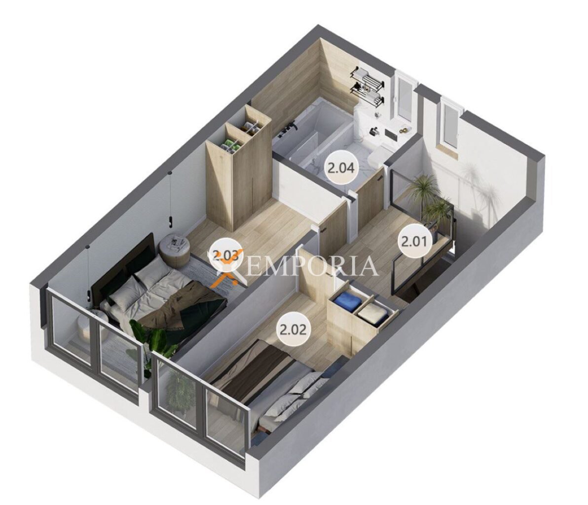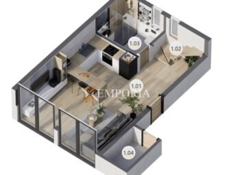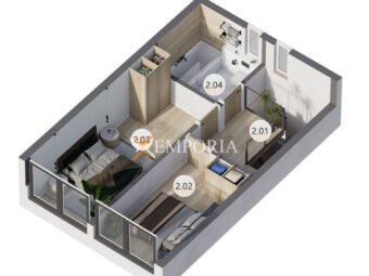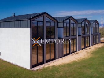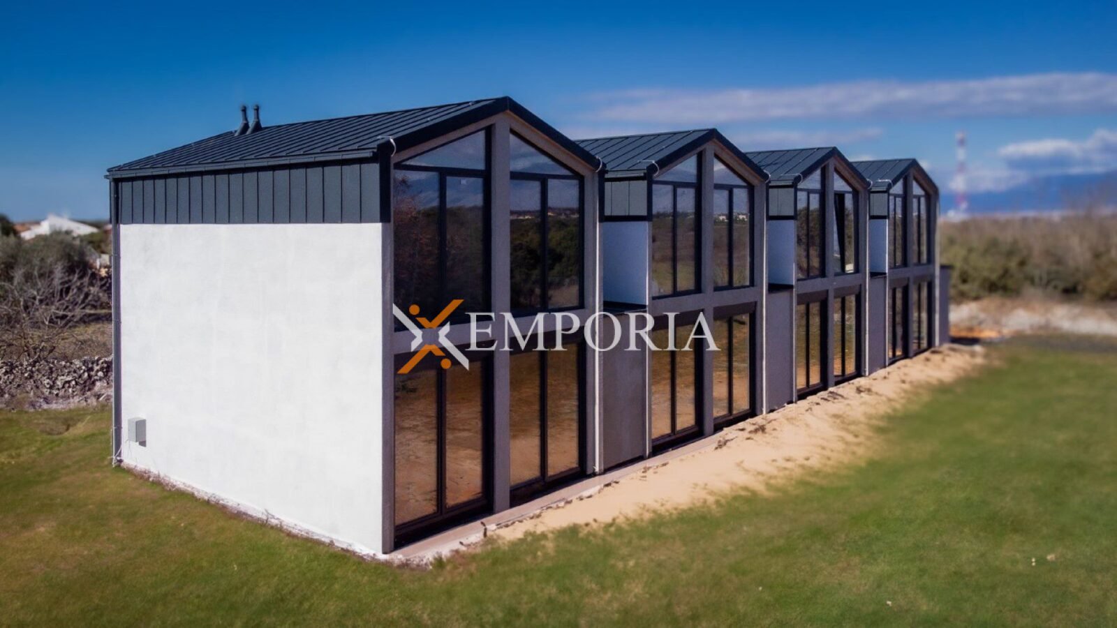 Ein modernes, vorgefertigtes Reihenhaus steht zum Verkauf. Es handelt sich um einen hochwertigen Neubau in einem modernen Resort in Zaton. Das Resort wurde in einem innovativen und minimalistischen Stil gestaltet und besteht aus insgesamt 8 Häusern.
