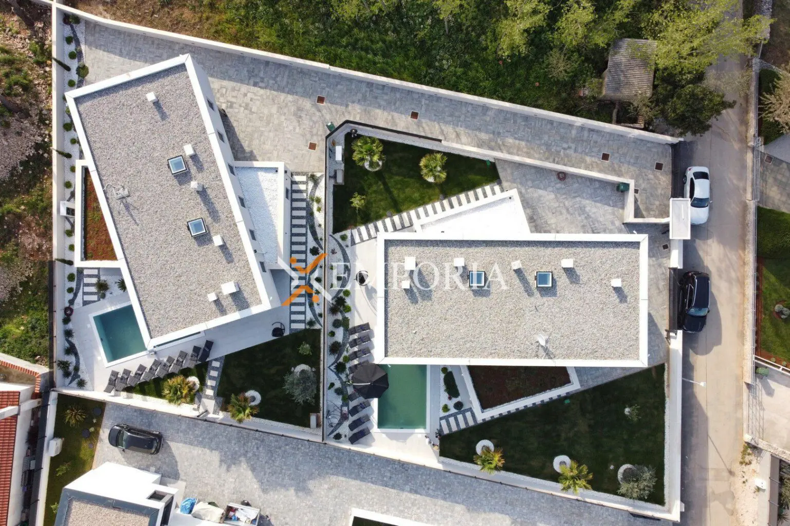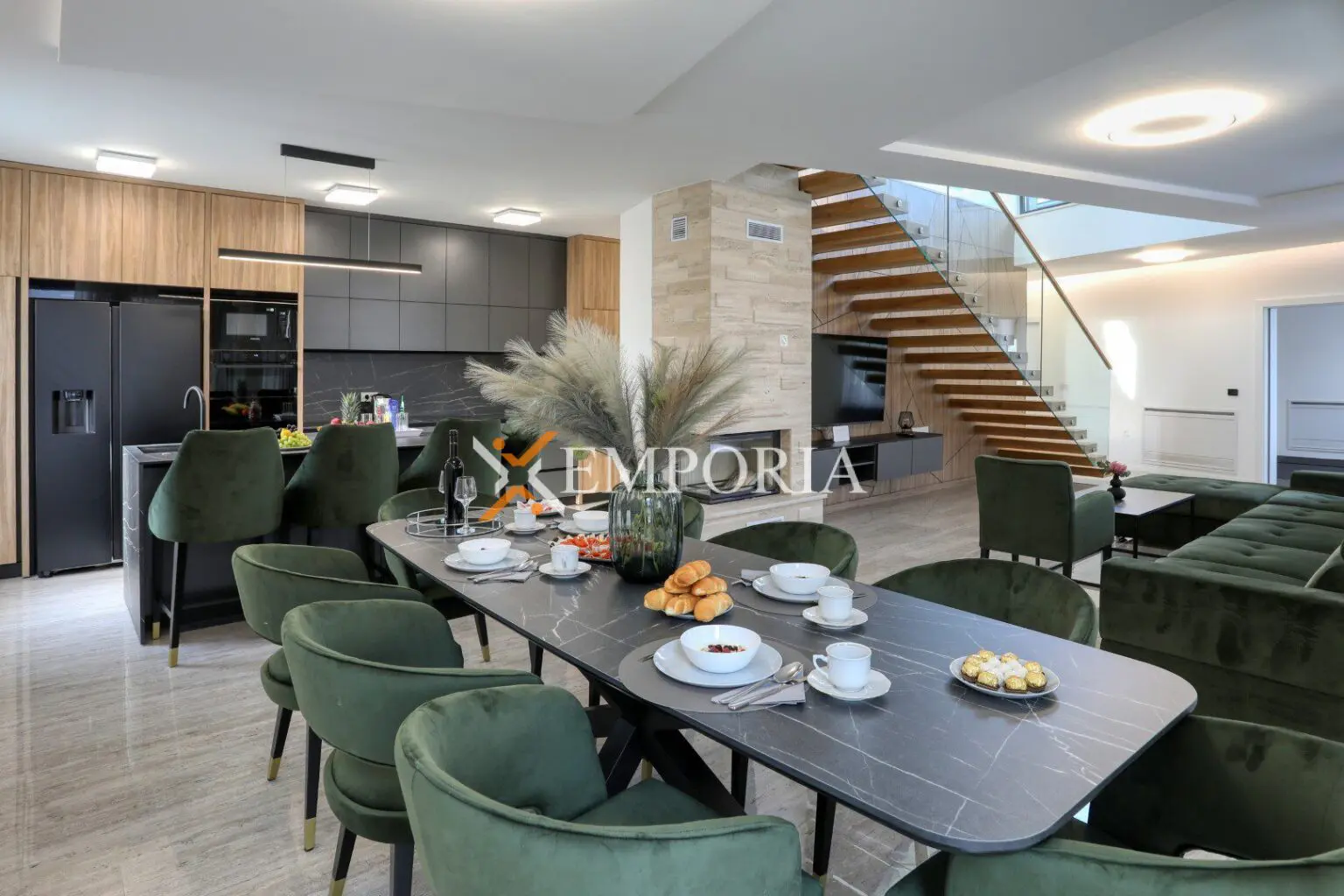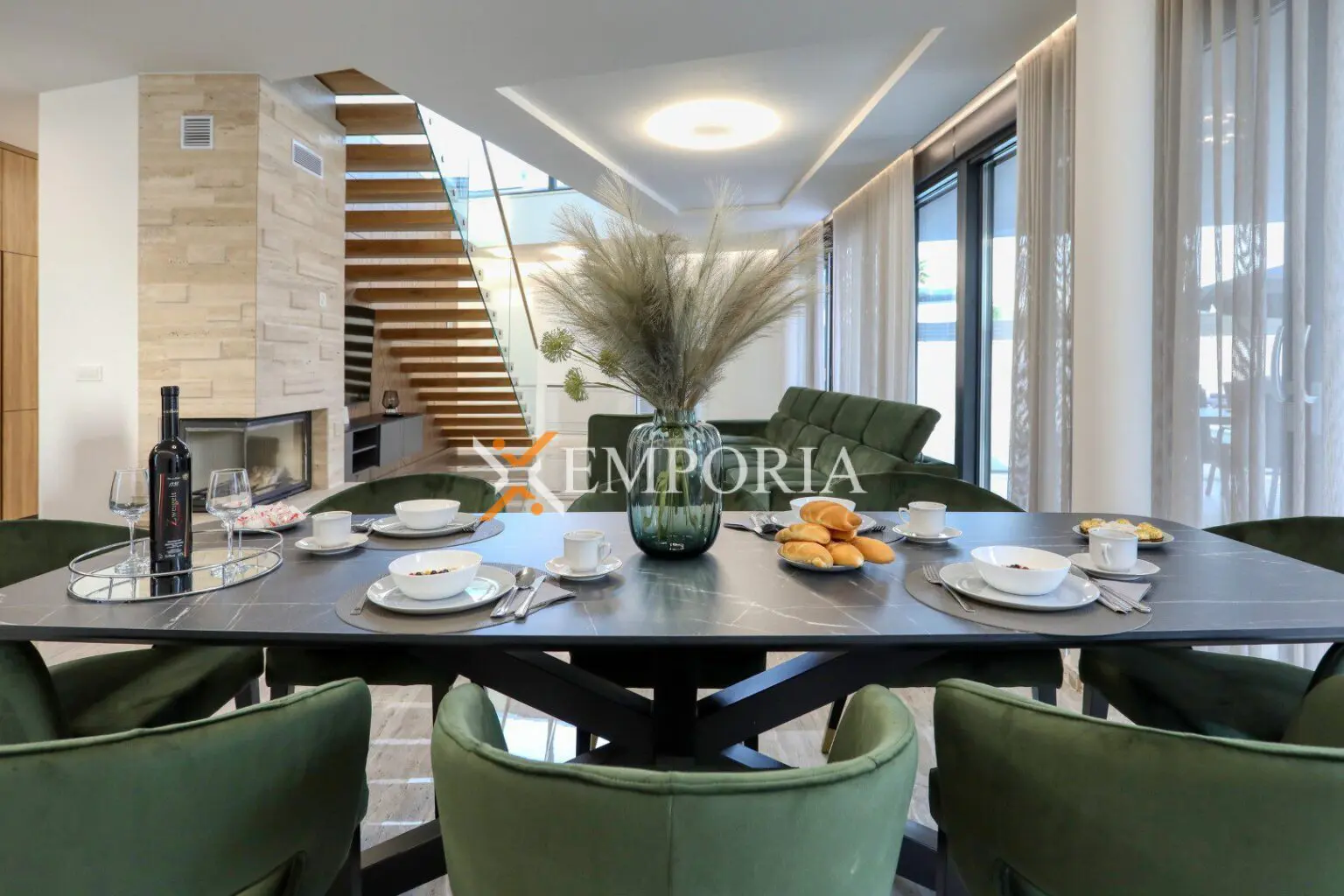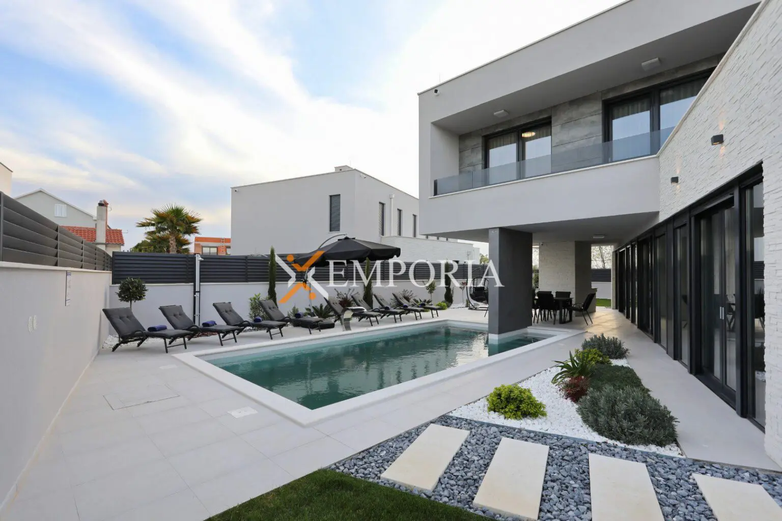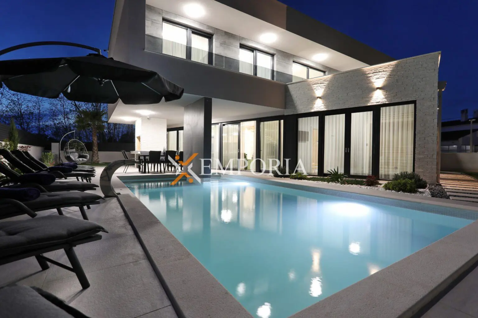 Zum Verkauf steht eine Luxusvilla mit Swimmingpool in Zaton. Es handelt sich um einen modernen Neubau. Die Villa ist komplett eingerichtet und ausgestattet. Moderner design des Interieurs und Exterieurs.