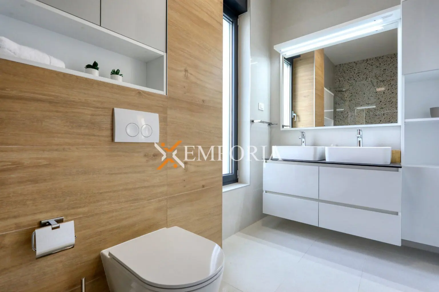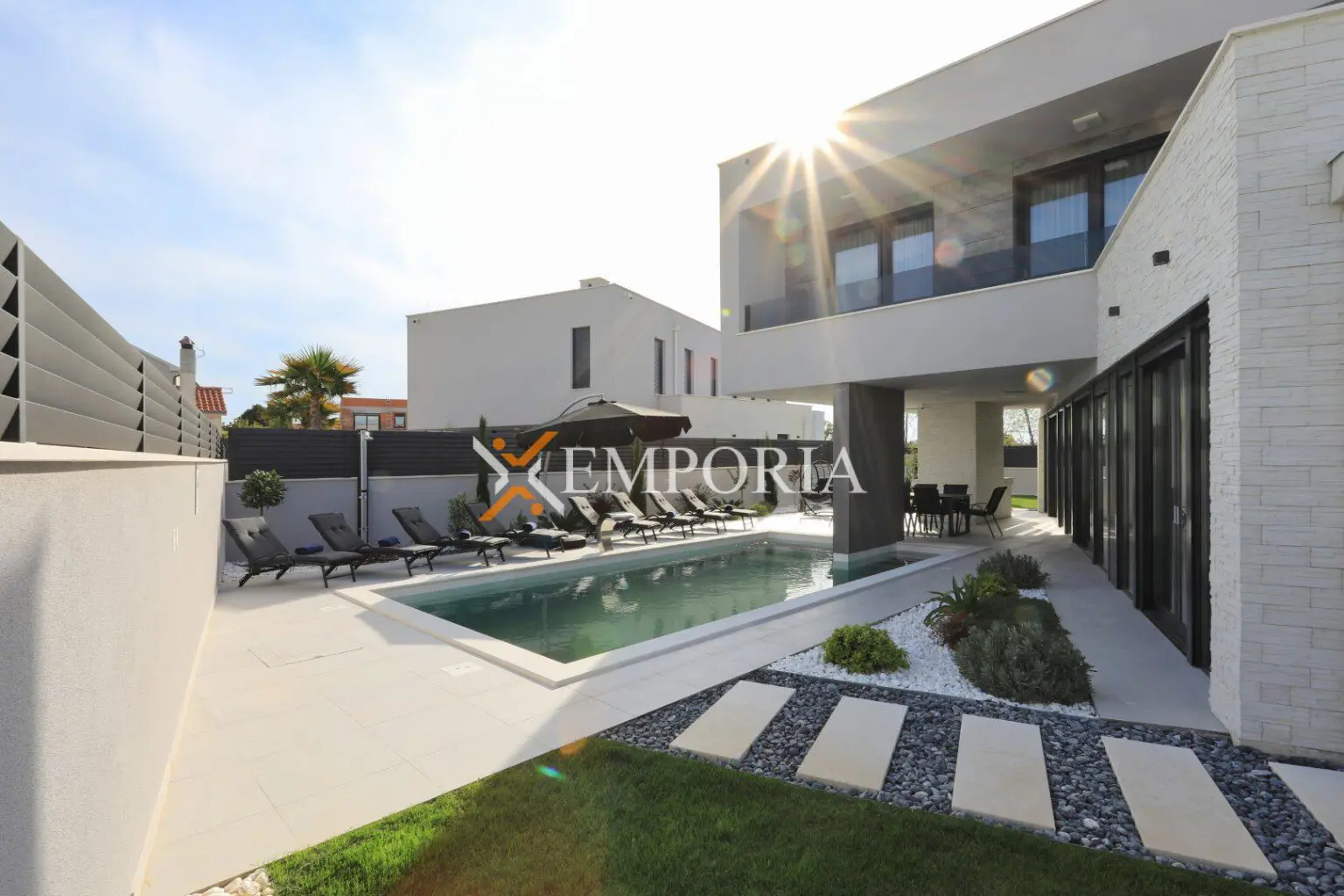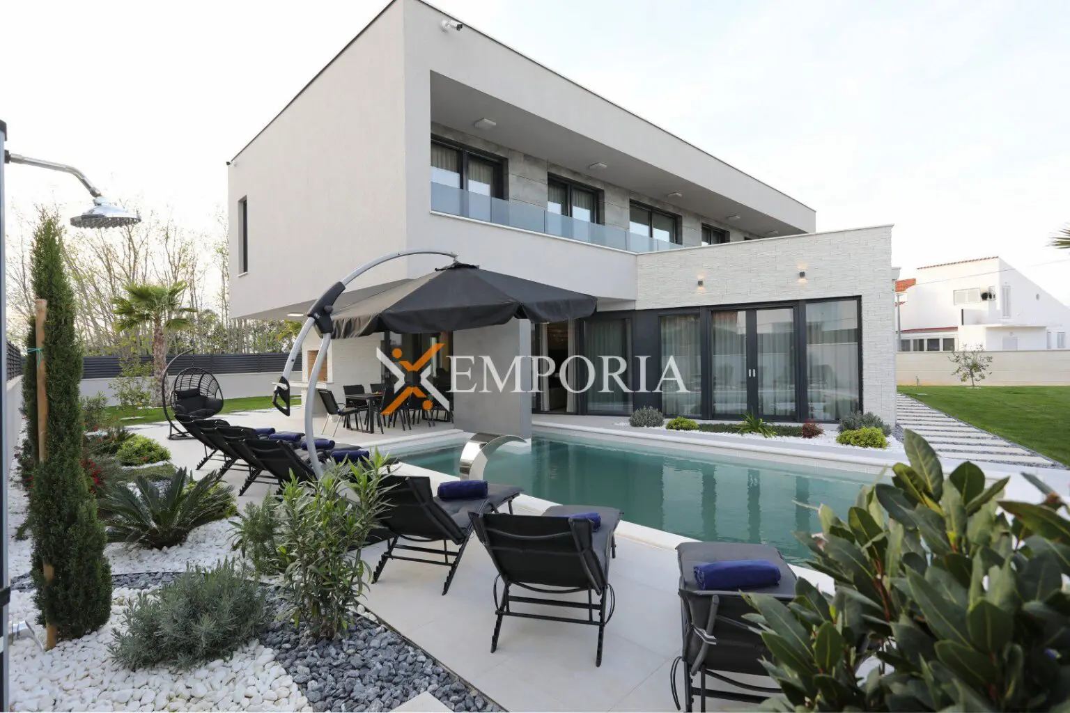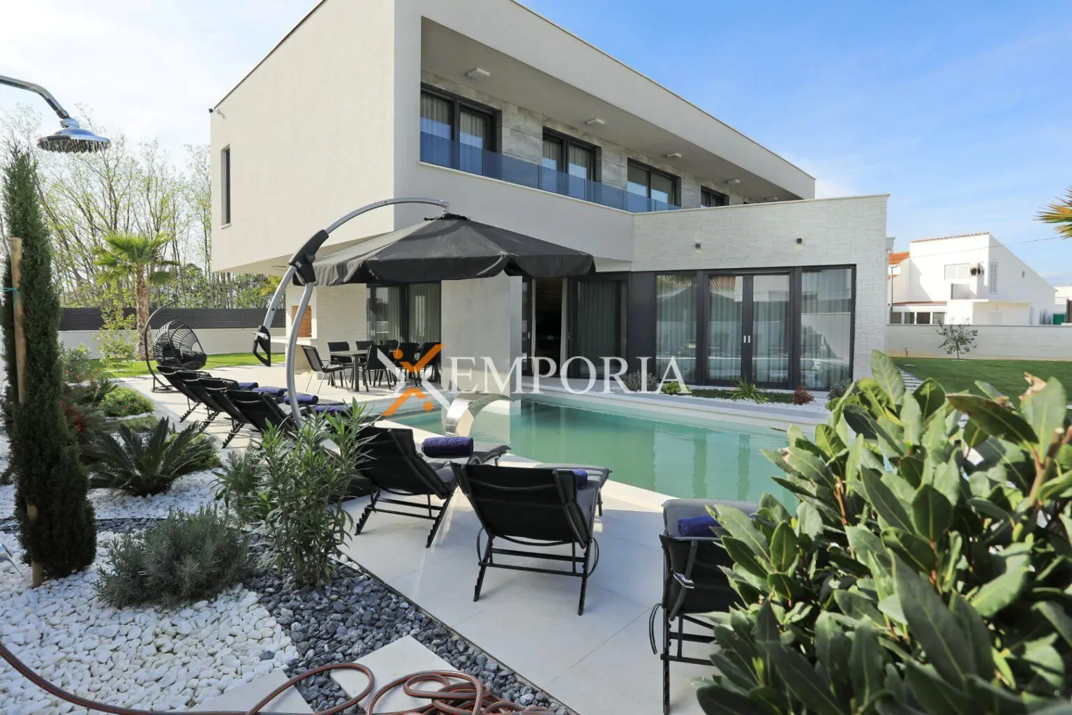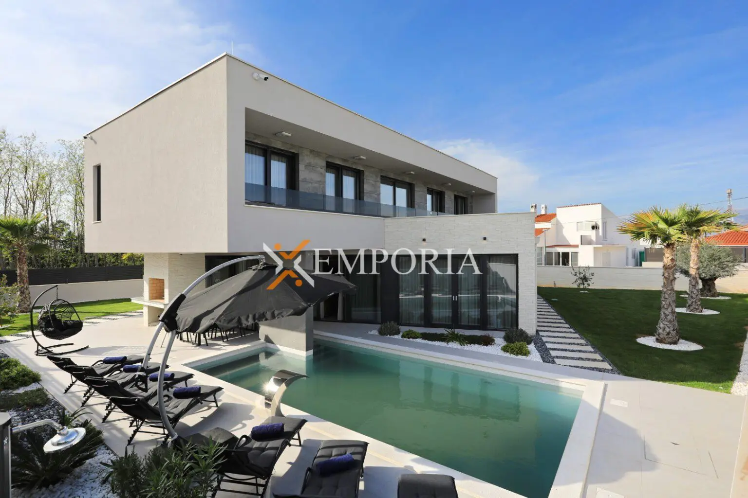 Zum Verkauf steht eine Luxusvilla mit Swimmingpool in Zaton. Es handelt sich um einen modernen Neubau. Die Villa ist komplett eingerichtet und ausgestattet. Moderner design des Interieurs und Exterieurs.