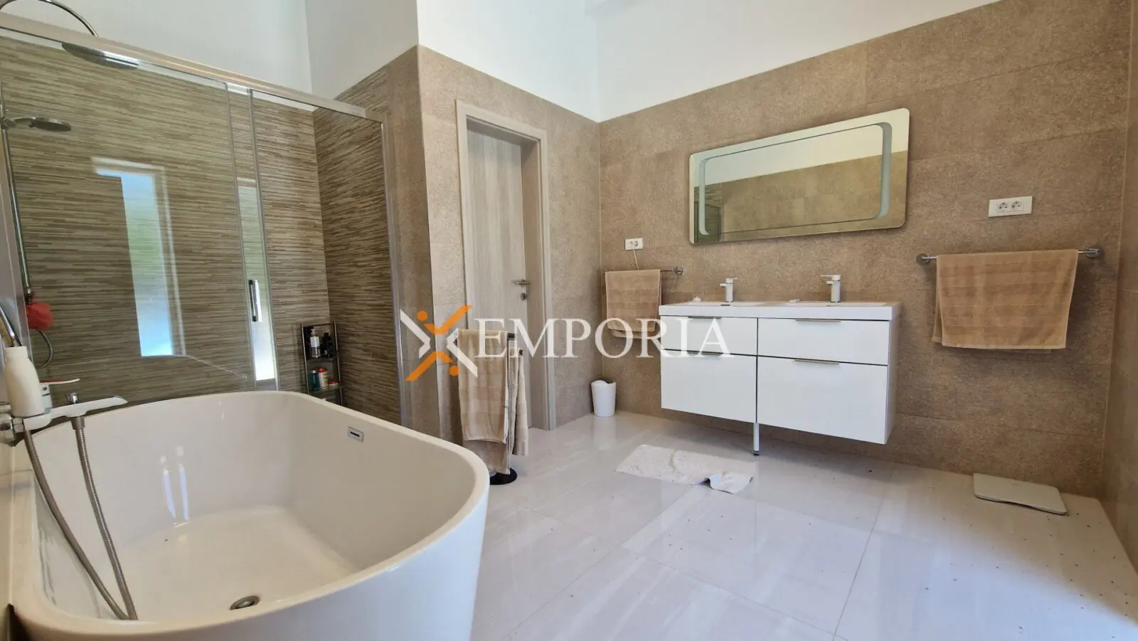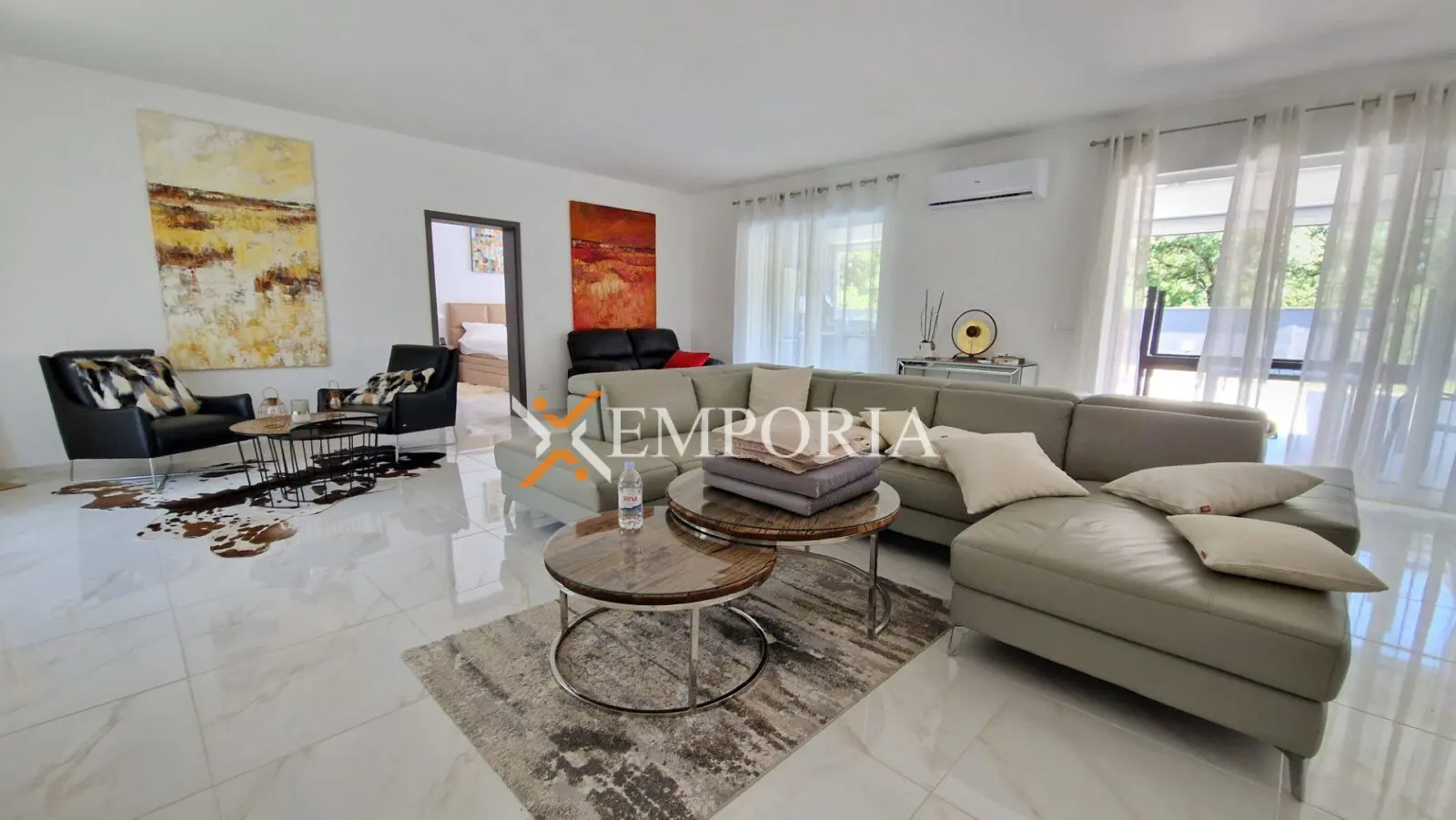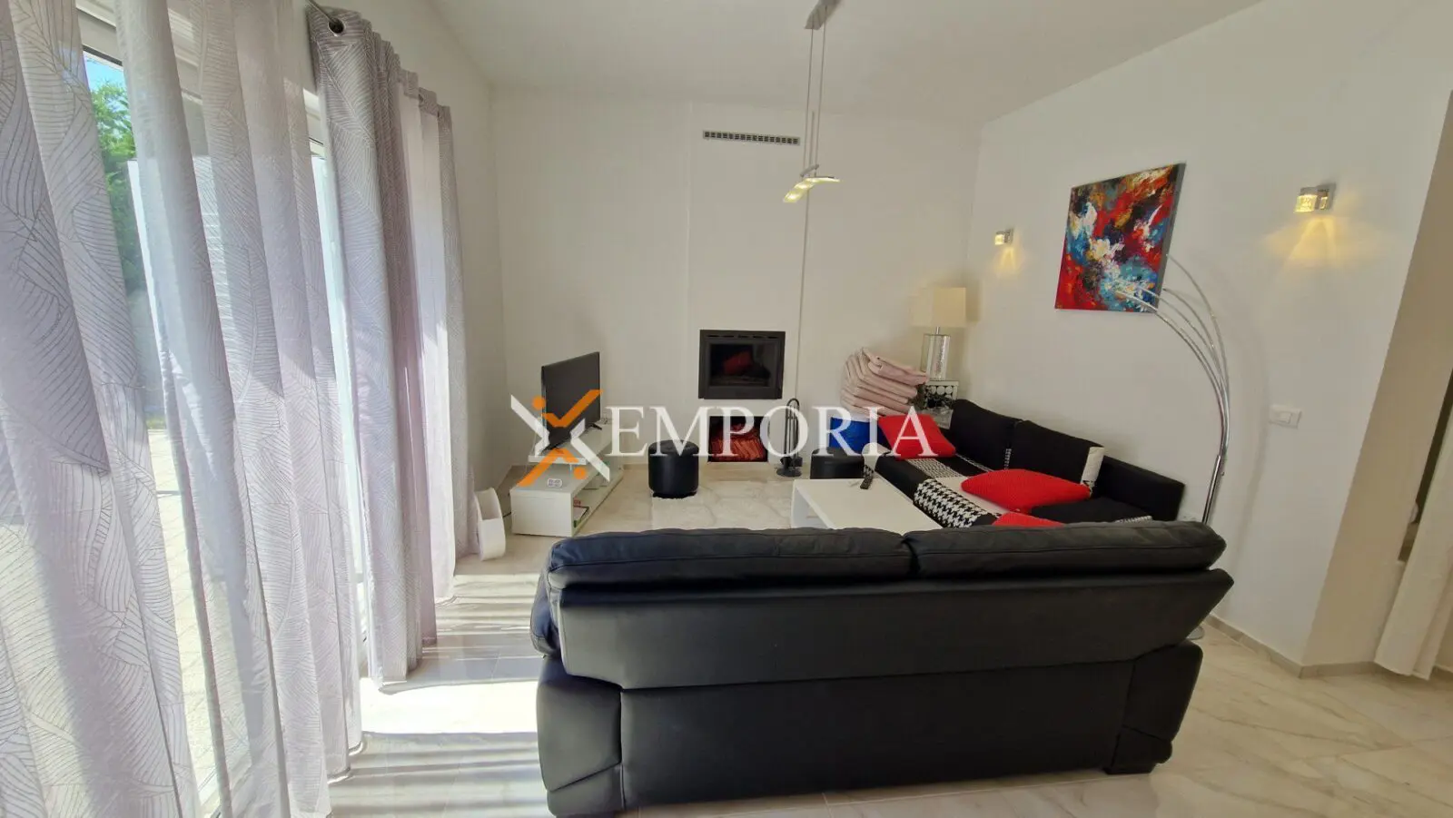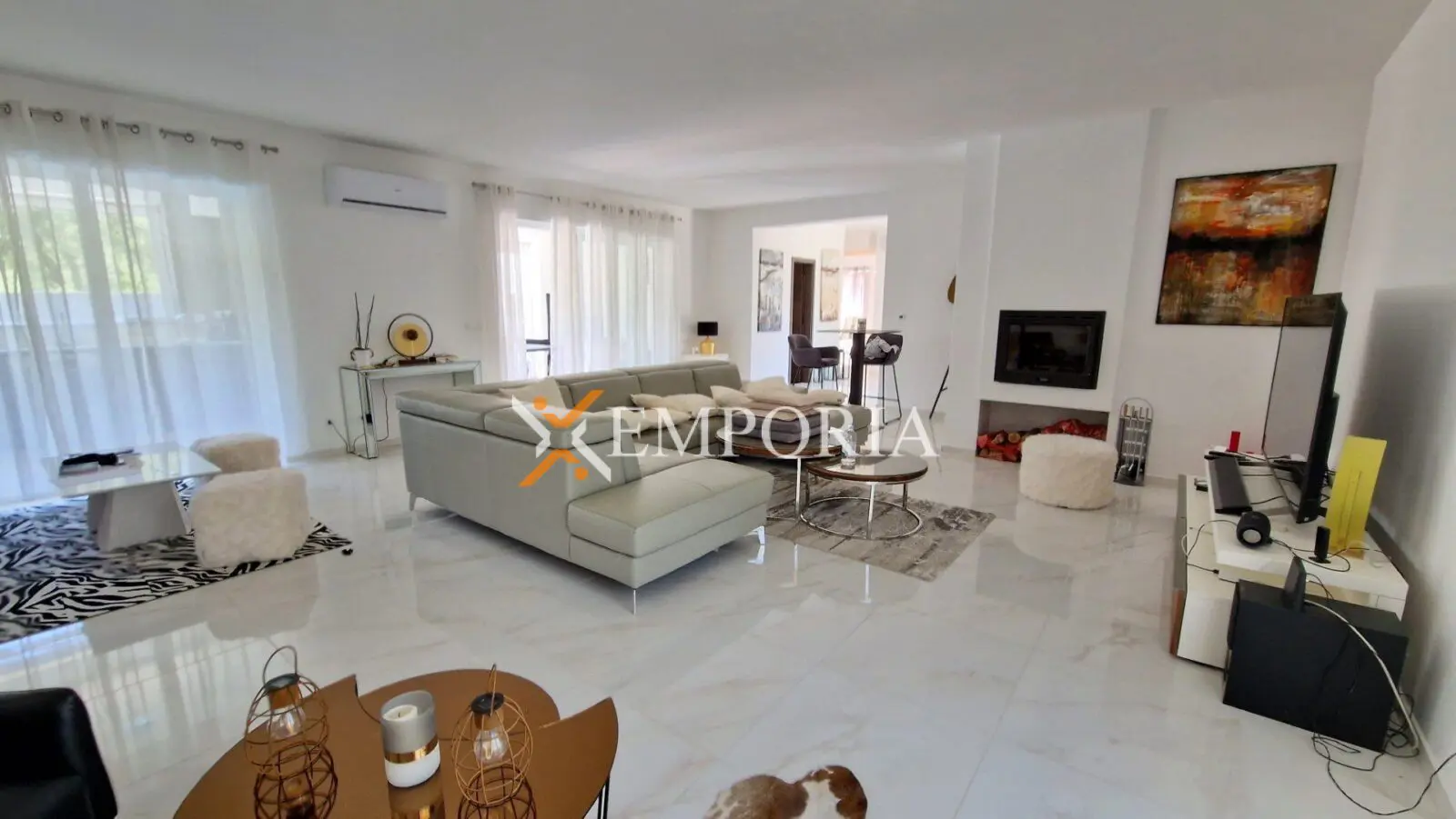 Im Haus befinden sich insgesamt 7 Klimaanlagen. Zusätzlich gibt es im gesamten Haus eine elektrische Fußbodenheizung und beide Wohnräume verfügen über Holzkamine.