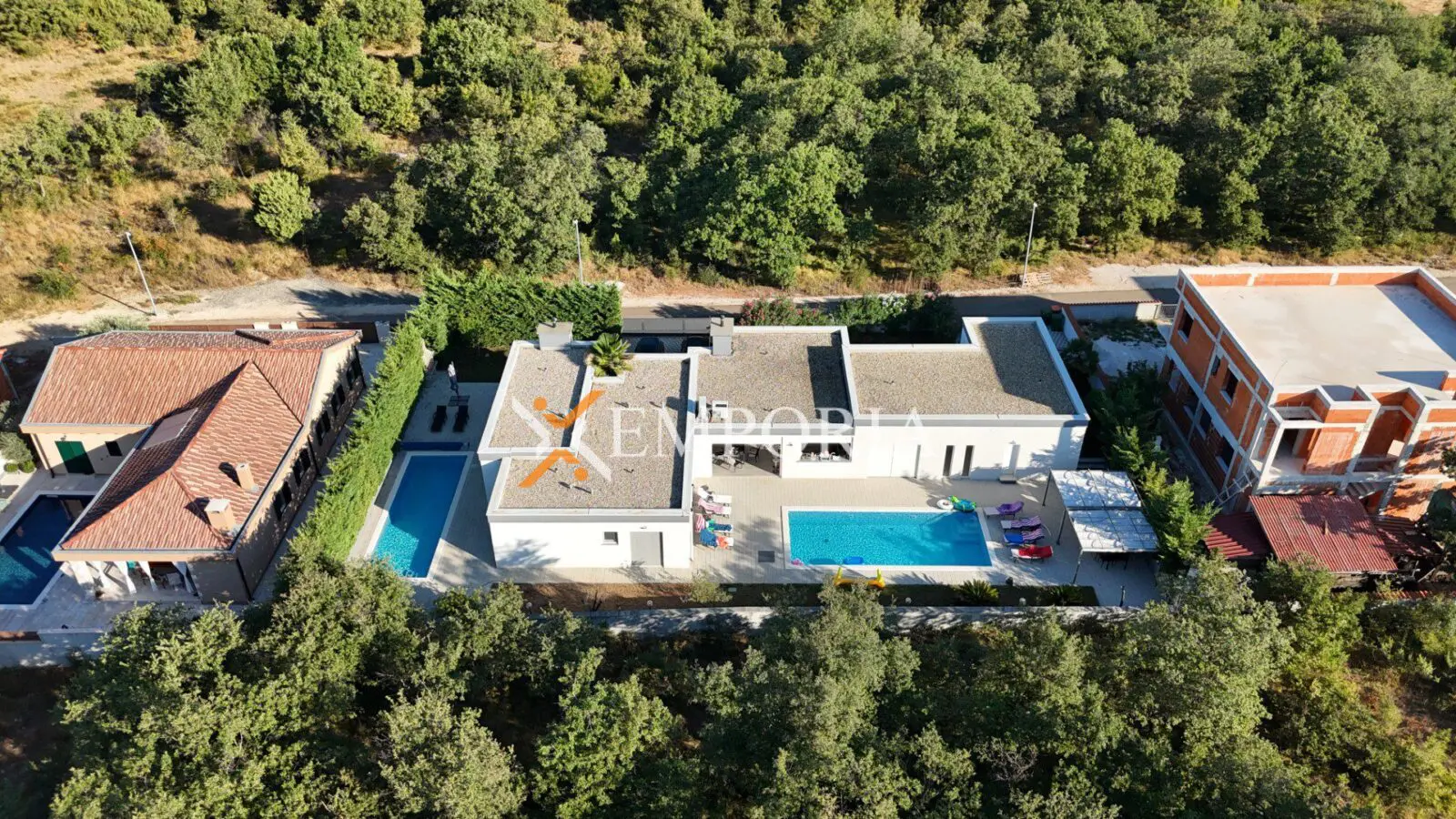 Die Gesamtfläche des Hauses mit Swimmingpools beträgt 335,24 m2 und es ist auf einem Grundstück von 1072 m2 gebaut.