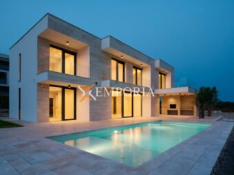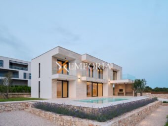 Zum Verkauf steht eine moderne Neubauvilla in Sveti Filip i Jakov mit einer Gesamtfläche von 303,07 m2 einschließlich Swimmingpool. Die Villa befindet sich auf einem Grundstück von 786 m2 und bietet einen hervorragenden Meerblick. Es handelt sich um eine Immobilie mit hohem Wohnstandard und funktionalem Grundriss – ideal für das Familienleben oder als Ferienimmobilie zur Vermietung.
