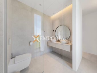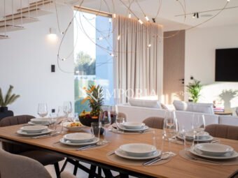 Die Villa ist komplett möbliert mit hochwertigen Designermöbeln und erstklassigen Geräten. Alle Räume verfügen über Deckenklimaanlagen, die Badezimmer sind mit einer Fußbodenheizung über Wärmepumpe ausgestattet. Der Pool ist mit Massagedüsen, Heiz- und Kühlfunktion sowie einer Außendusche versehen.
