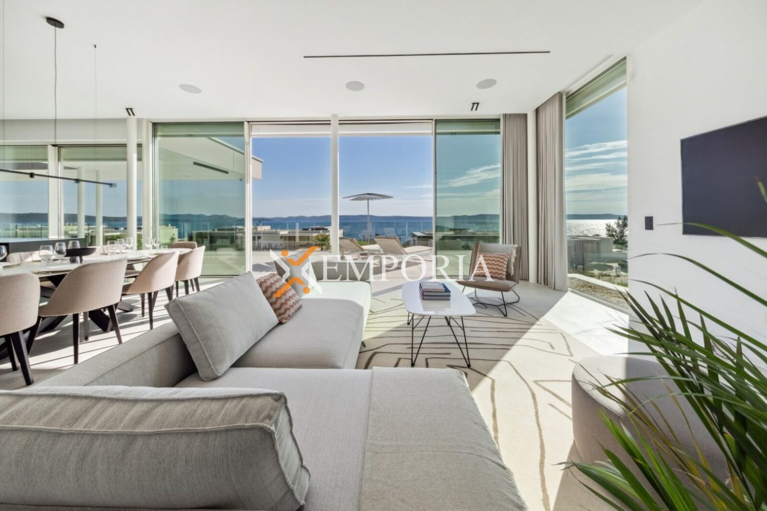 Diese einzigartige Villa in Ugljan auf der Insel Ugljan verbindet exklusiven Wohnkomfort mit einem besonderen Highlight: Ein Pool im ersten Obergeschoss, auf gleicher Ebene wie der Wohn- und Essbereich, mit traumhaftem Meerblick. Nur 100 m vom Meer und 2 km vom Zentrum entfernt, bietet sie Zugang zu einem 5-Sterne-Resort mit Sportplätzen, zwei Gemeinschaftspools und erstklassigen Annehmlichkeiten.