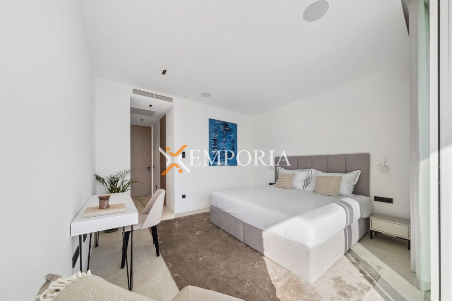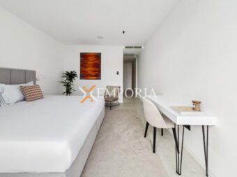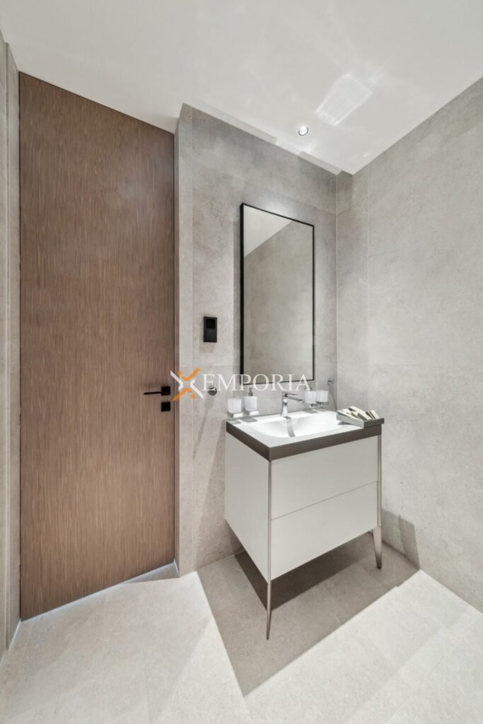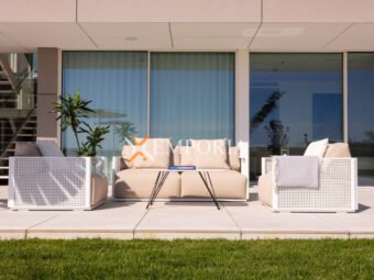 Die Villa ist komplett möbliert und mit hochwertigen Designermöbeln sowie Geräten ausgestattet. Alle Räume verfügen über Deckenklimaanlagen, während die Bäder mit Fußbodenheizung über eine Wärmepumpe beheizt werden. Der Pool ist mit Massagedüsen, Heiz- und Kühlfunktion sowie einer Außendusche ausgestattet – seine Lage im Obergeschoss ist außergewöhnlich.