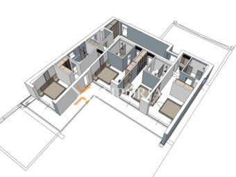 Das Obergeschoss besteht aus vier komfortablen Schlafzimmern, jeweils mit eigenem Bad. Zwei der Schlafzimmer verfügen über begehbare Kleiderschränke. Zusätzlich gibt es eine Waschküche, einen zentralen Flur mit Treppe sowie eine großzügige überdachte Terrasse. Die Gesamtfläche des Obergeschosses beträgt 156,79 m².