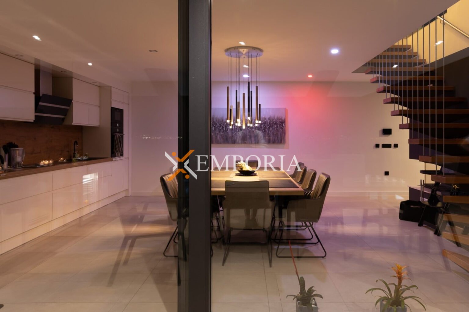 Die im Jahr 2019 errichtete Villa wurde nach höchsten Qualitätsstandards realisiert und überzeugt durch die Verwendung erlesener Materialien, exklusiver Designermöbel und hochwertigster Markengeräte. Jedes Detail ist präzise durchdacht und vereint Funktionalität, höchsten Wohnkomfort und zeitlose, zeitgenössische Architektur.