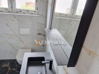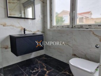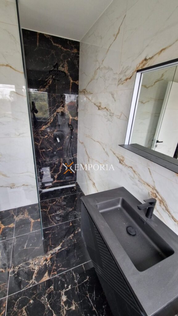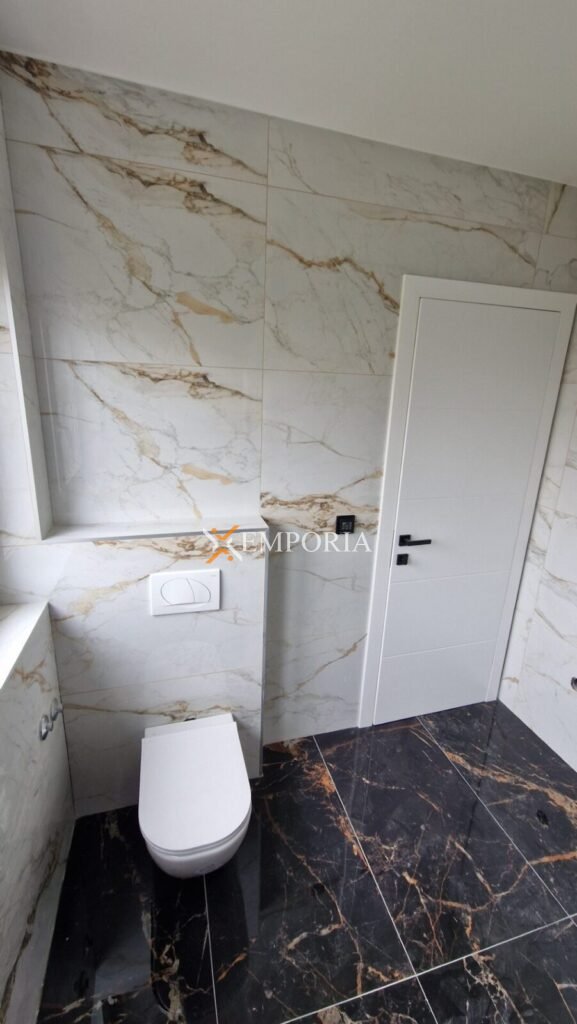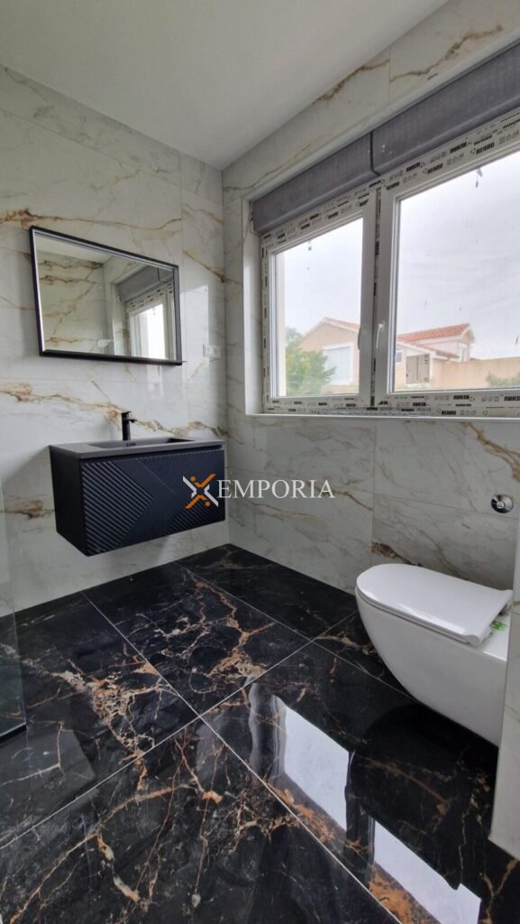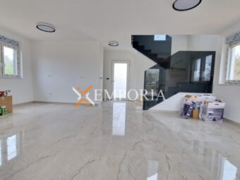 Das Haus ist aus wärmeisolierenden Ziegeln gebaut und verfügt über eine 10 cm Styropor-Fassade. Die Fenster sind aus PVC mit Dreifachverglasung, elektrischen Rollläden und Insektenschutzgittern. Die Böden bestehen aus Fliesen und Laminat. Eine elektrische Fußbodenheizung ist im gesamten Haus installiert, und jedes Schlafzimmer sowie das Wohnzimmer verfügen über eine eigene Klimaanlage (insgesamt 4).