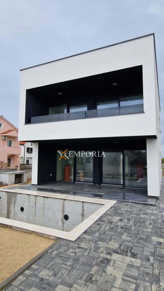 In Privlaka, nur 330 m vom Meer und 1,45 km vom Ortszentrum entfernt, steht ein moderner Neubau mit Pool zum Verkauf. Die Gesamtfläche beträgt 184,65 m², das Haus befindet sich auf einem Grundstück von 318 m². Grundriss und Ausstattung machen die Immobilie geeignet für ganzjähriges Wohnen oder touristische Vermietung.