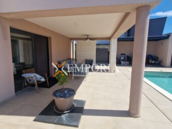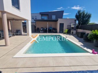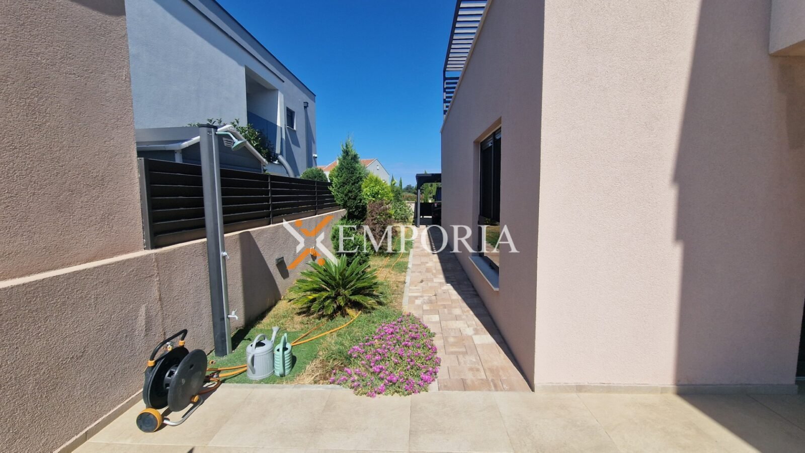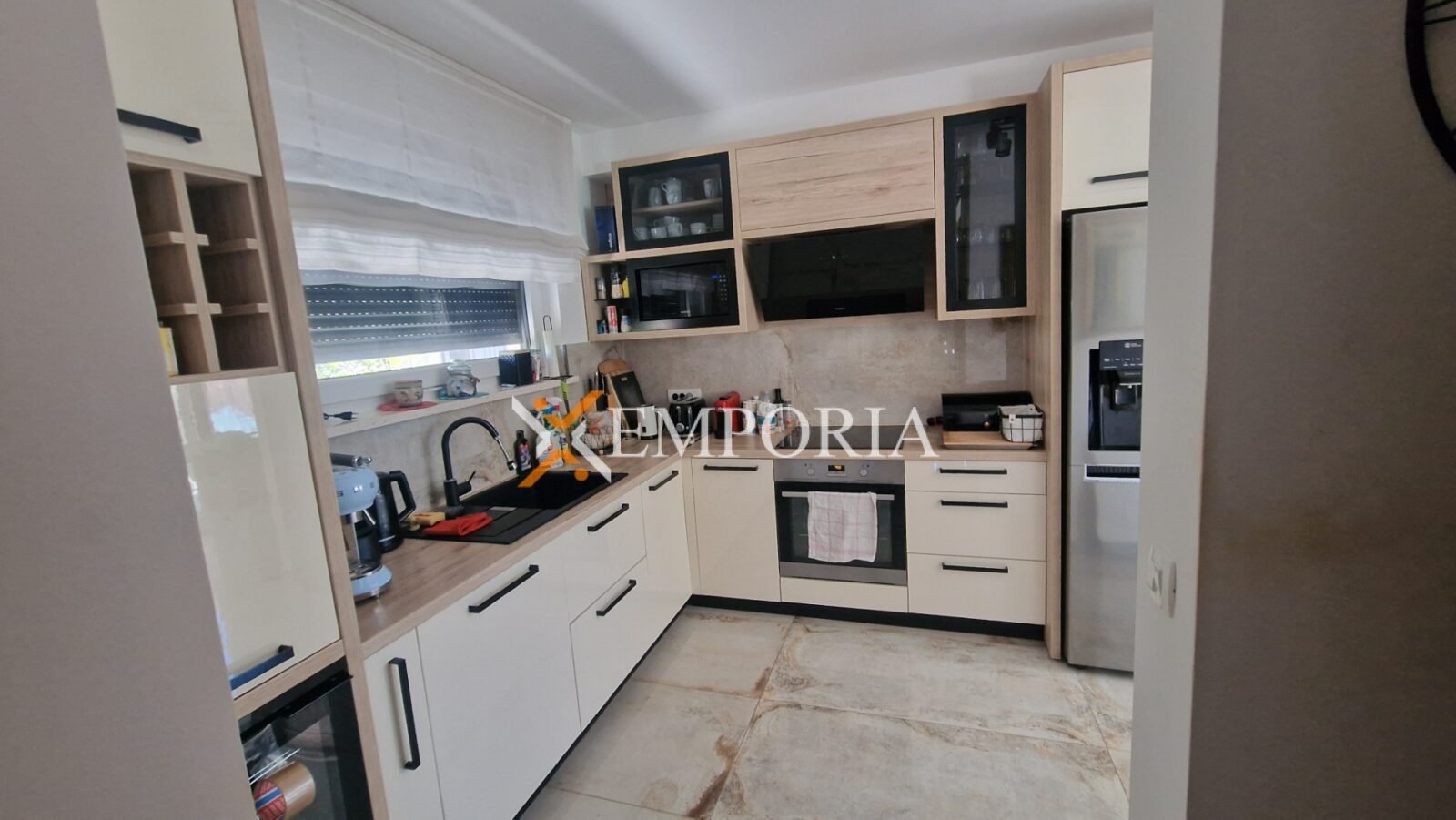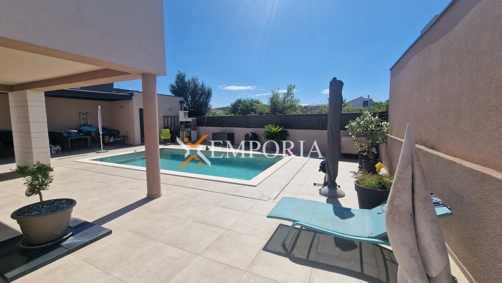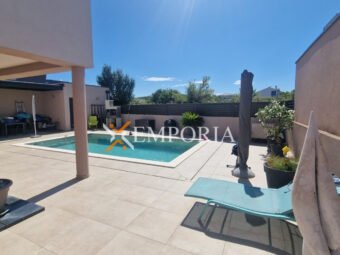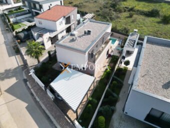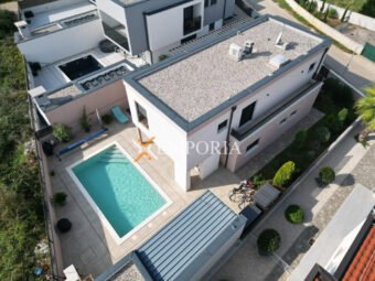 Zum Verkauf steht ein attraktives Neubauhaus mit Pool in ruhiger Lage in Zaton bei Nin, nur 1.140 m vom Meer und 1.100 m vom Ortszentrum entfernt. Das Haus befindet sich auf einem 441 m² großen Grundstück und verfügt über eine Wohnfläche von 162,10 m² sowie einen 32 m² großen Pool, was eine gesamte Nutzfläche von 194,33 m² ergibt.