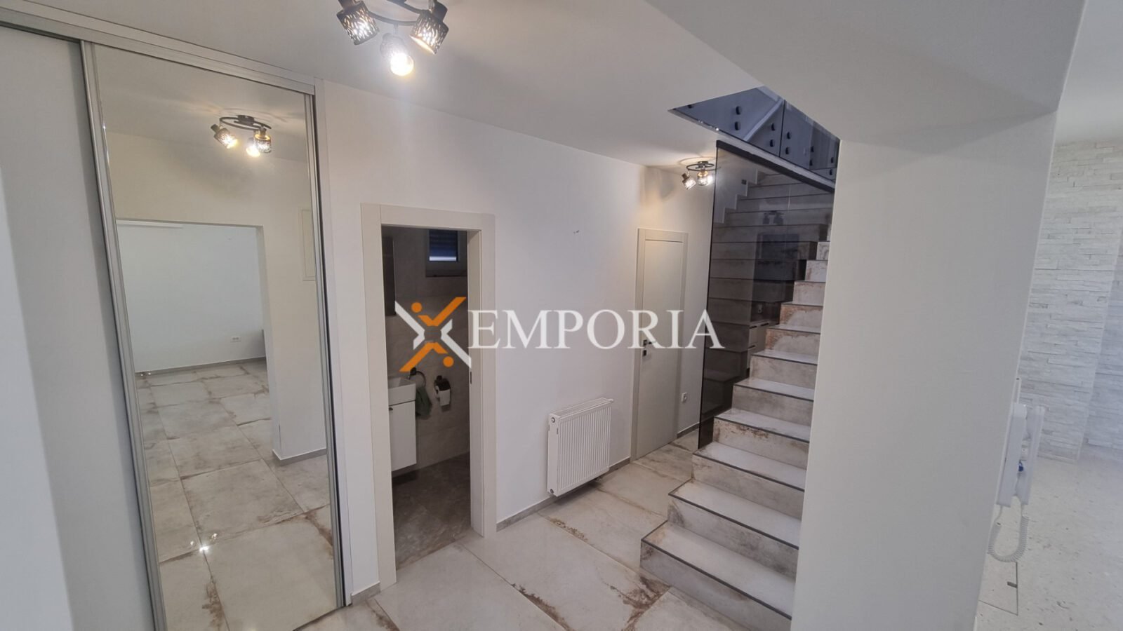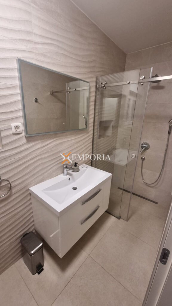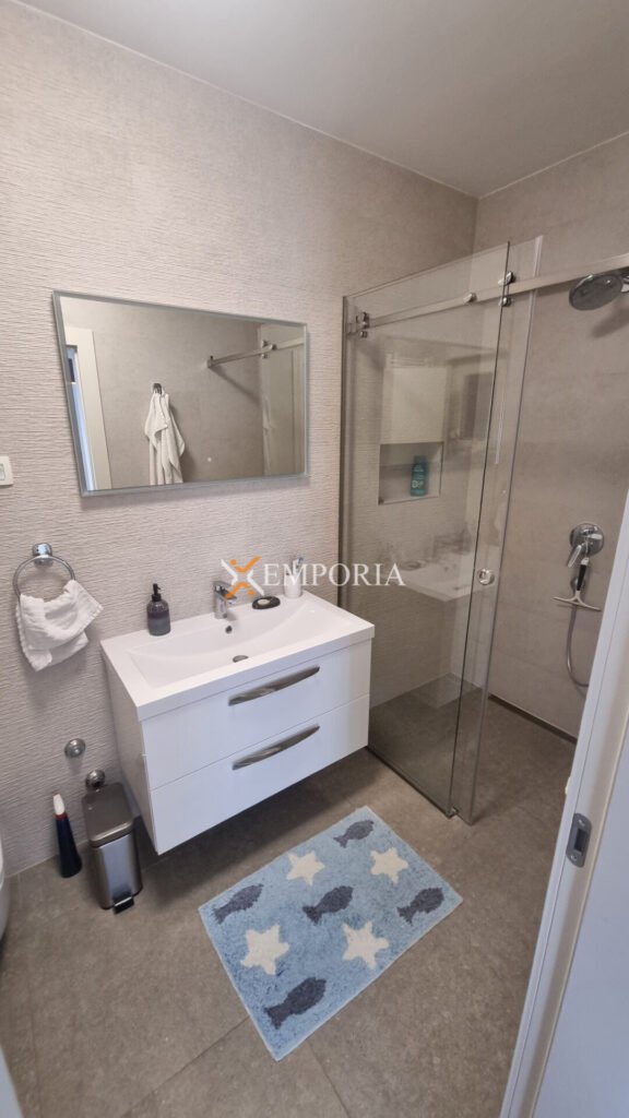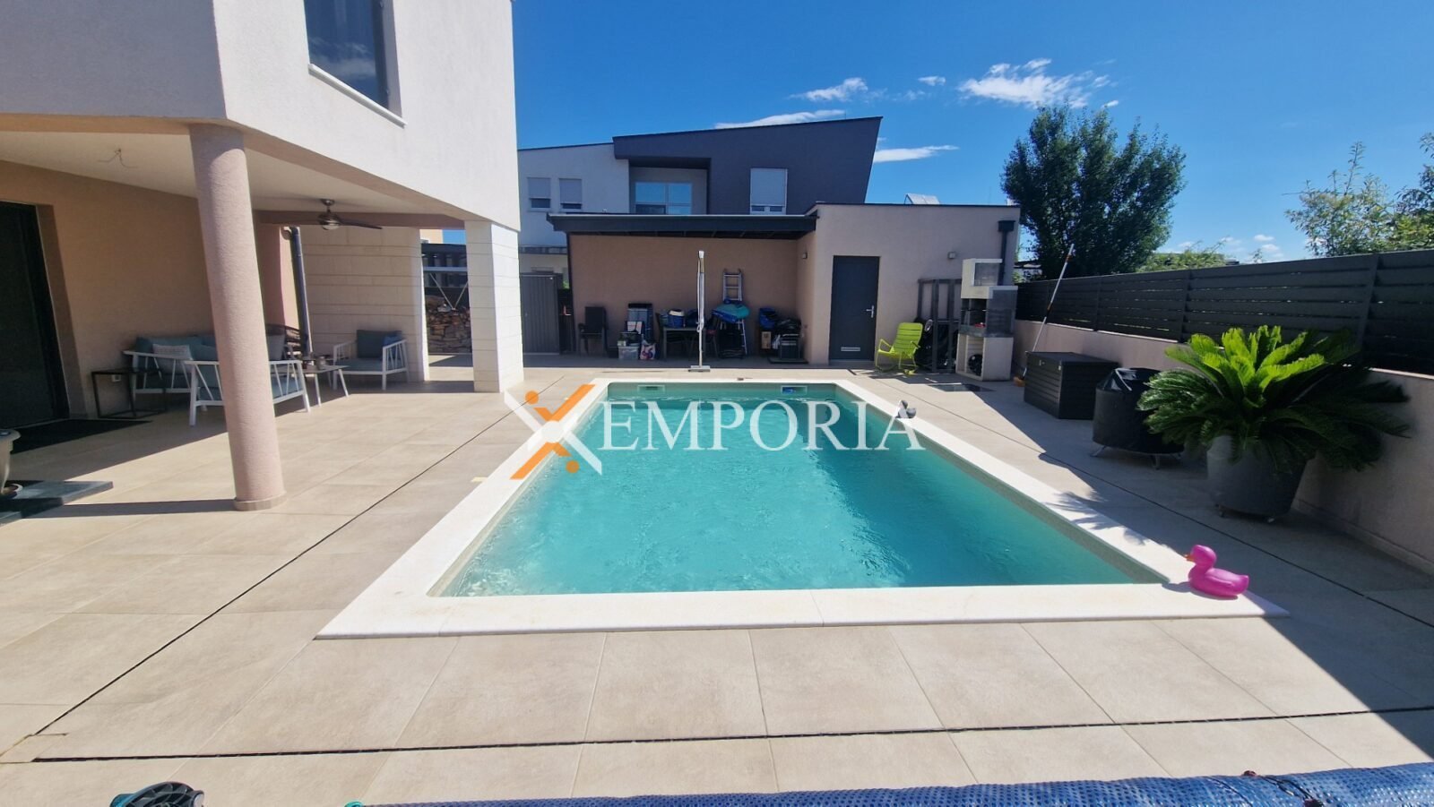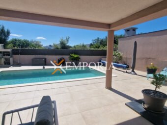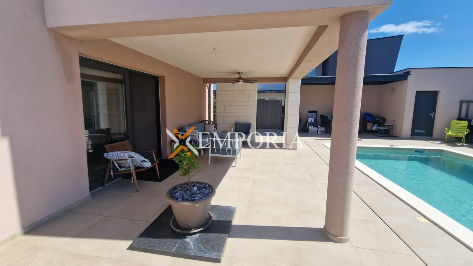 Zum Verkauf steht ein attraktives Neubauhaus mit Pool in ruhiger Lage in Zaton bei Nin, nur 1.140 m vom Meer und 1.100 m vom Ortszentrum entfernt. Das Haus befindet sich auf einem 441 m² großen Grundstück und verfügt über eine Wohnfläche von 162,10 m² sowie einen 32 m² großen Pool, was eine gesamte Nutzfläche von 194,33 m² ergibt.