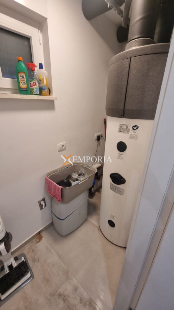 Das Haus ist mit fünf Klimaanlagen ausgestattet – eine im Wohnzimmer und jeweils eine in jedem Schlafzimmer. Es verfügt außerdem über elektrische Radiatoren und einen Kaminanschluss. Die Fenster sind aus PVC mit Dreifachverglasung, Rollläden und Insektenschutzgittern. Die Eingangstür ist einbruchs- und feuerhemmend, die Böden sind mit Fliesen und Parkett ausgelegt. Die Fassade ist mit 8 cm Styropor gedämmt und das Dach ist neu, flach und aus Beton.
