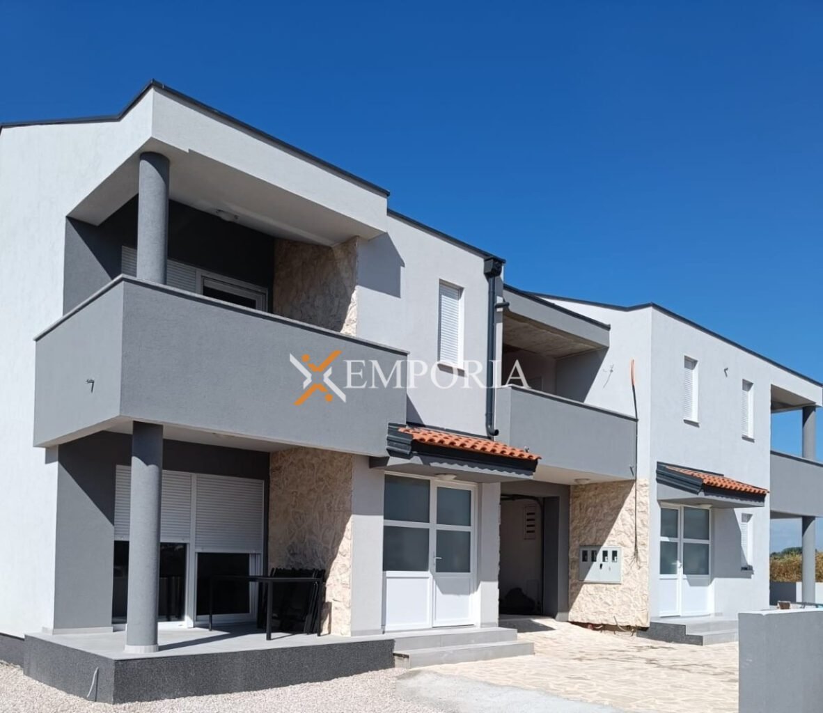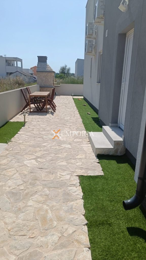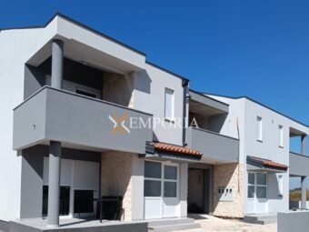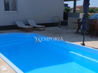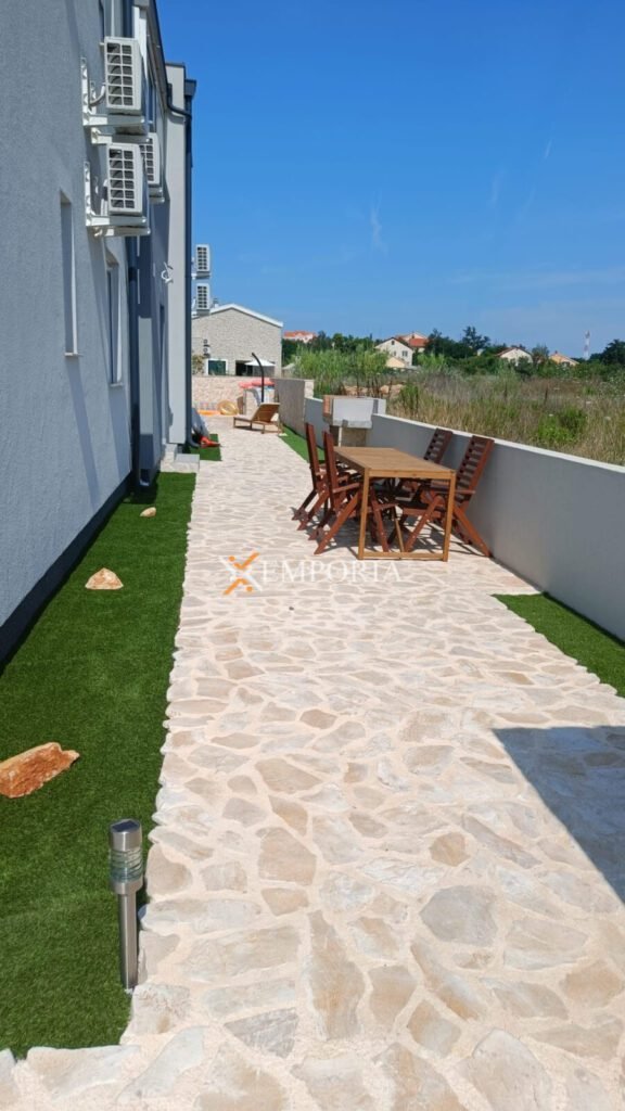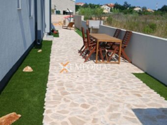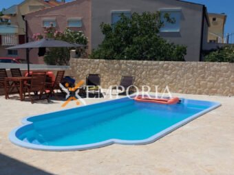 In ruhiger Lage in Privlaka, nur 240 m vom Meer und 200 m vom Ortszentrum entfernt, steht ein modernes Haus mit insgesamt fünf Wohneinheiten, privatem Pool und großzügigem Garten zum Verkauf. Das Grundstück hat eine Fläche von 575 m², und die gesamte netto nutzbare Wohnfläche des Hauses mit Pool beträgt 297,14 m².