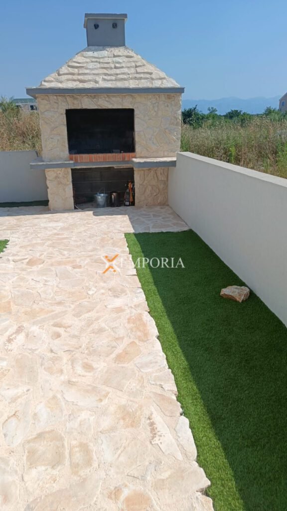 Das Haus wurde 2022 mit hochwertigen Materialien gebaut – Ziegel-Thermoblock, dreifach verglaste PVC-Fenster, Fassade mit 8 cm Styropordämmung und geflieste Böden. Das Objekt wird komplett möbliert verkauft, mit einer voll ausgestatteten Küche einschließlich Kühlschrank mit Gefrierfach, Grill-Mikrowelle und Geschirrspüler. Jede Wohnung verfügt über eine eigene Klimaanlage, während die PVC-Fenster mit Insektenschutzgittern und Dreifachverglasung ausgestattet sind. Der Pool ist aus PVC gefertigt, und der Hof ist angelegt und eingezäunt. Neben vier Außenstellplätzen steht auch eine Garage zur Verfügung.