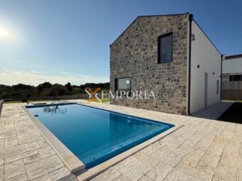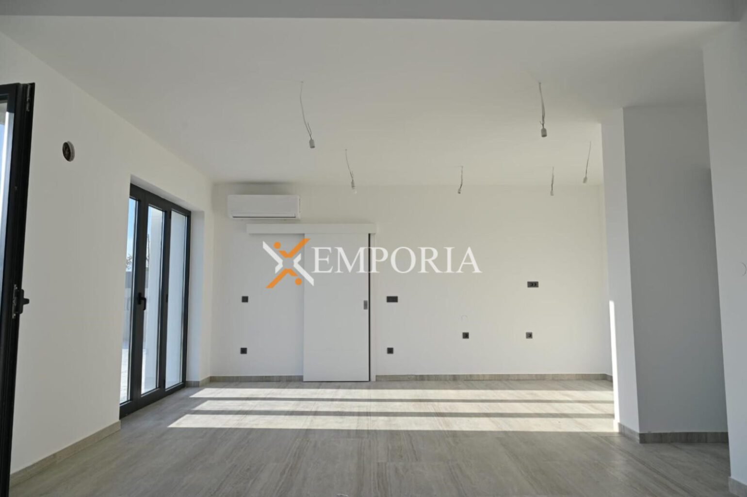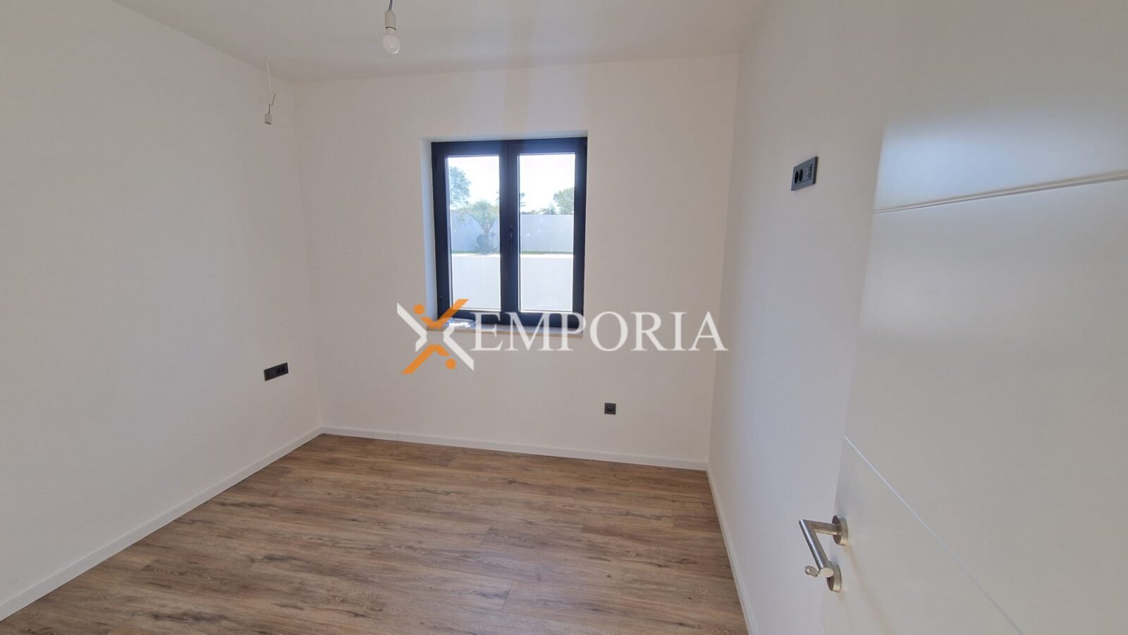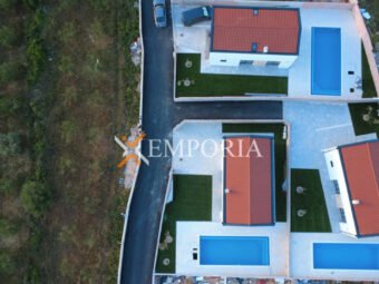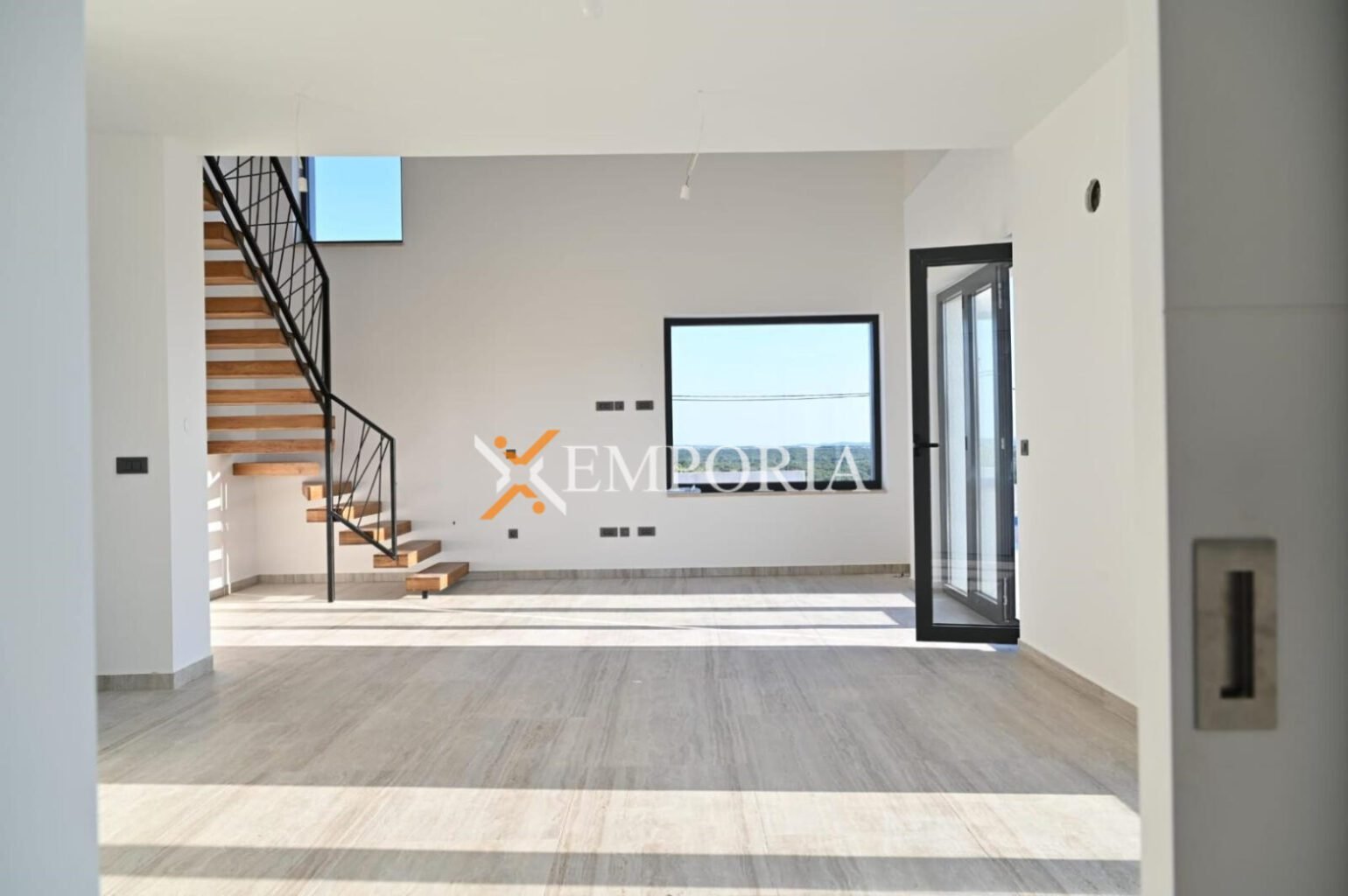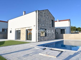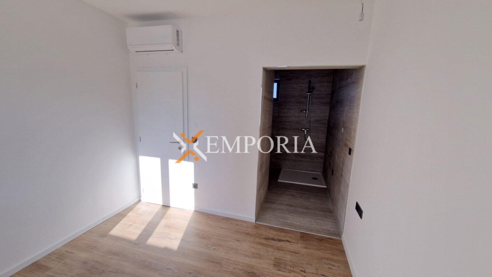 Im ruhigen Ort Visočane, Gemeinde Poličnik, steht ein modernes Neubauhaus mit Pool zum Verkauf, nur 6 km vom Meer und 300 m vom Ortszentrum entfernt. Das Haus erstreckt sich über zwei Etagen und bietet einen sorgfältig geplanten Grundriss für komfortables Wohnen. Im Erdgeschoss befinden sich ein Flur, ein Schlafzimmer mit eigenem Badezimmer, eine Küche mit Ess- und Wohnbereich, ein zusätzliches WC sowie ein Waschraum. Eine Innentreppe führt in das Obergeschoss, wo sich ein Flur und zwei Schlafzimmer befinden, jeweils mit eigenem Badezimmer. Die Netto-Wohnfläche beträgt 102,53 m², während das Grundstück 401 m² groß ist. Der Außenbereich bietet einen schön angelegten Garten, einen 40 m² großen Pool mit Folienauskleidung und Vorbereitung für Heizung sowie zwei Parkplätze.