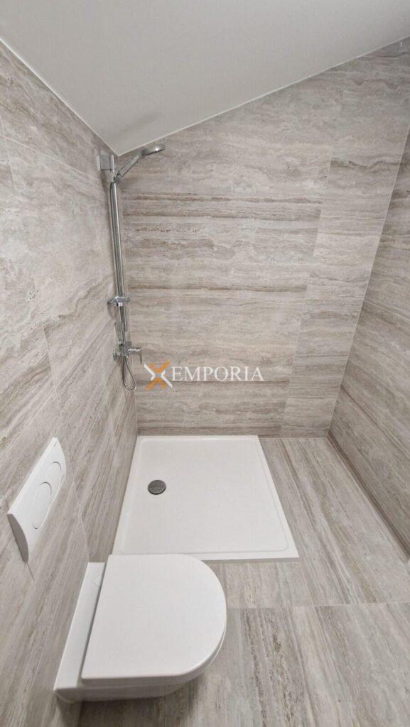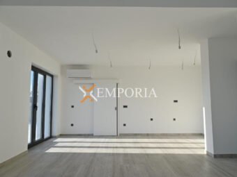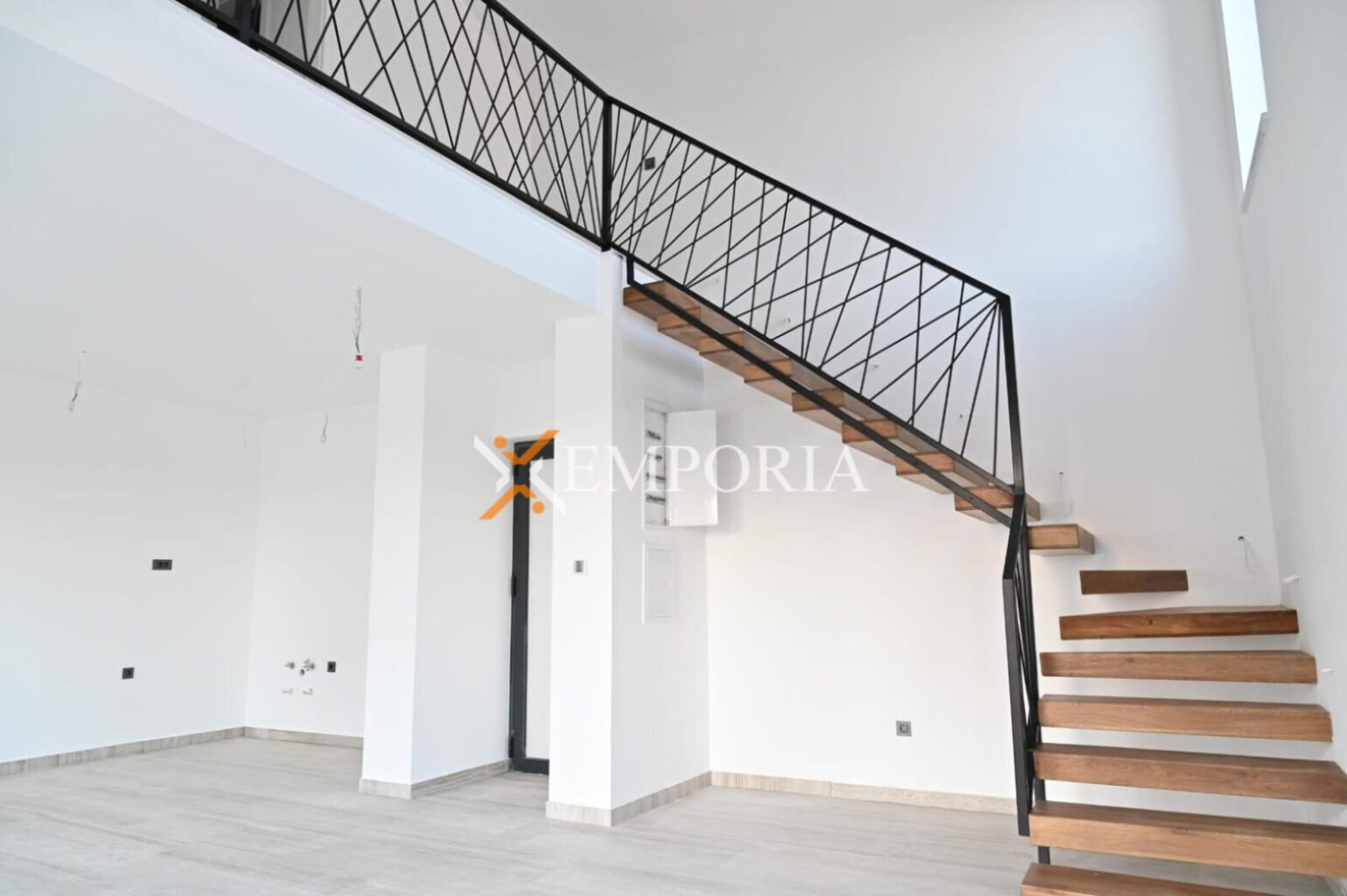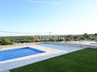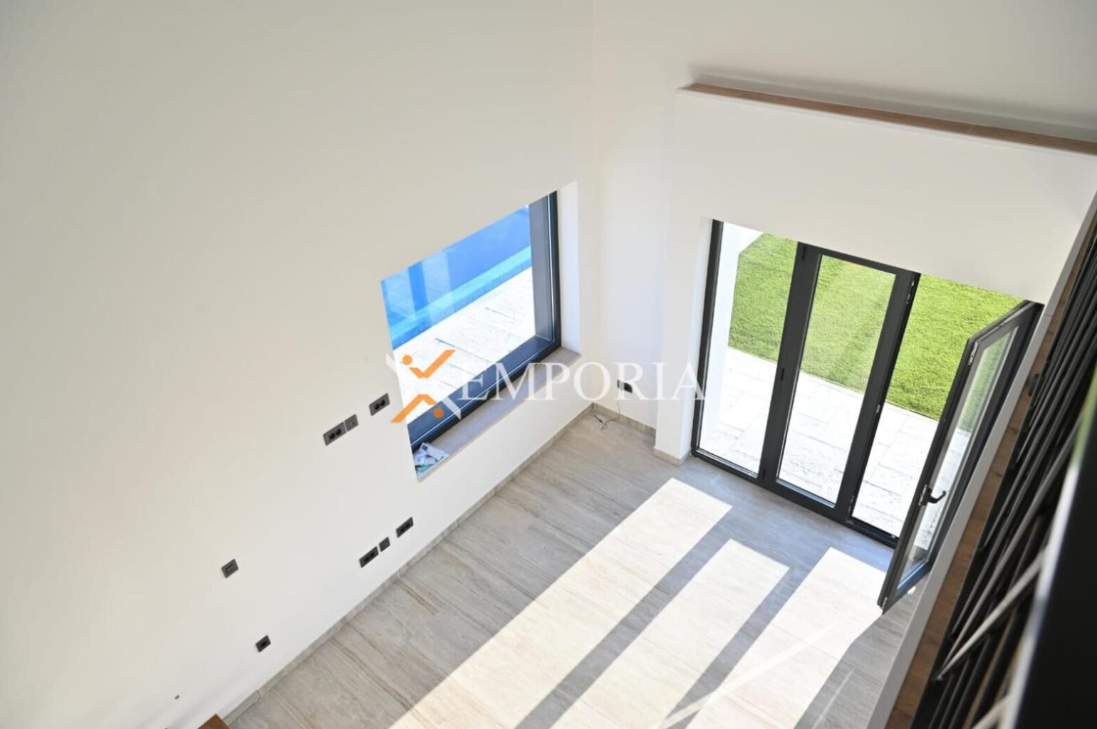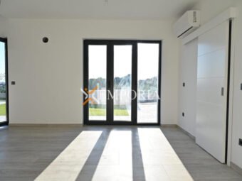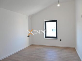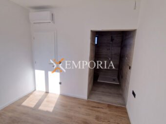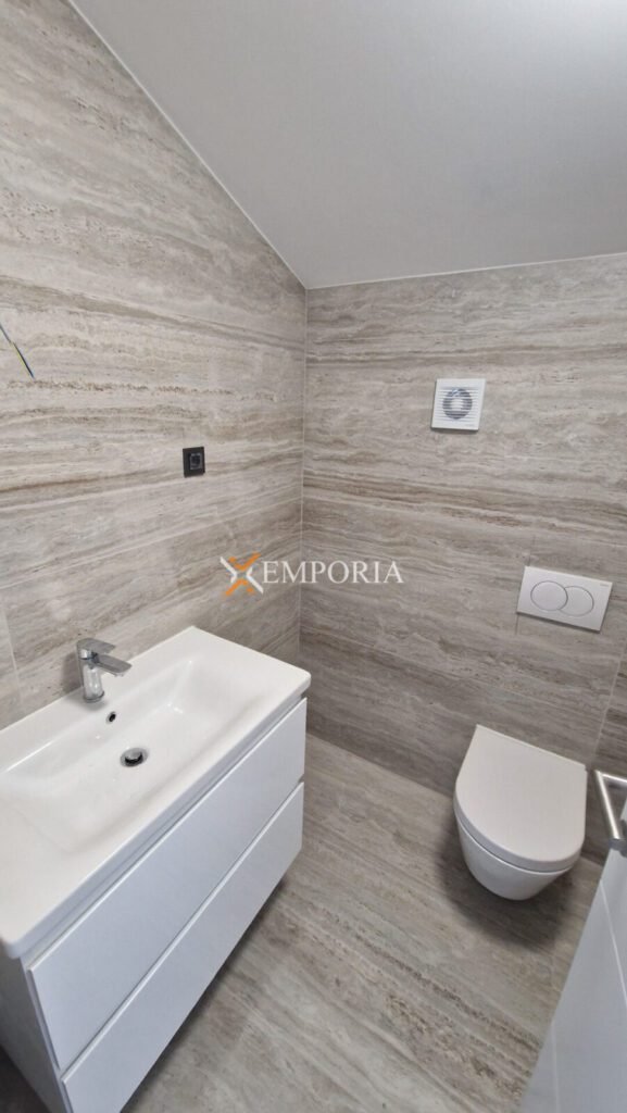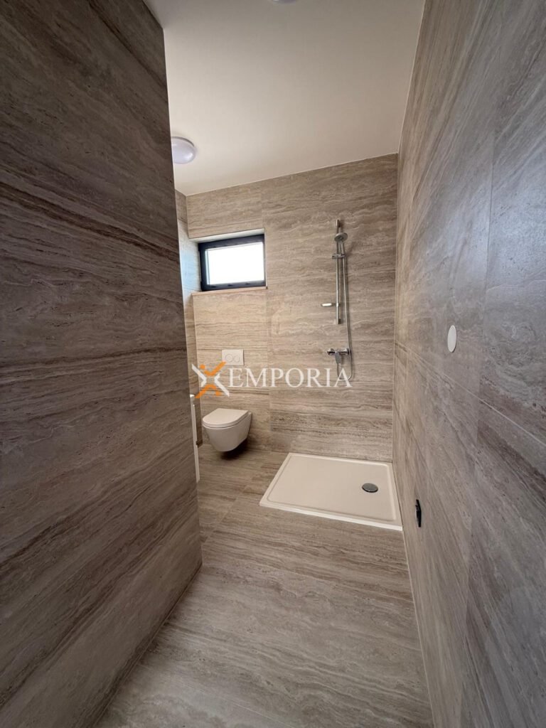 Im ruhigen Ort Visočane, Gemeinde Poličnik, steht ein modernes Neubauhaus mit Pool zum Verkauf, nur 6 km vom Meer und 300 m vom Ortszentrum entfernt. Das Haus erstreckt sich über zwei Etagen und bietet einen sorgfältig geplanten Grundriss für komfortables Wohnen. Im Erdgeschoss befinden sich ein Flur, ein Schlafzimmer mit eigenem Badezimmer, eine Küche mit Ess- und Wohnbereich, ein zusätzliches WC sowie ein Waschraum. Eine Innentreppe führt in das Obergeschoss, wo sich ein Flur und zwei Schlafzimmer befinden, jeweils mit eigenem Badezimmer. Die Netto-Wohnfläche beträgt 102,53 m², während das Grundstück 401 m² groß ist. Der Außenbereich bietet einen schön angelegten Garten, einen 40 m² großen Pool mit Folienauskleidung und Vorbereitung für Heizung sowie zwei Parkplätze.