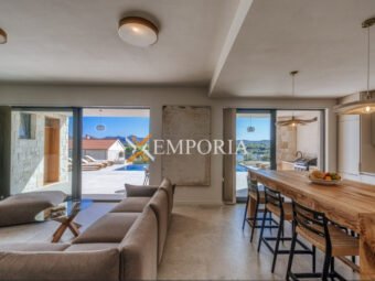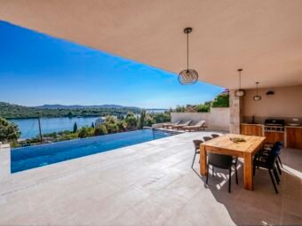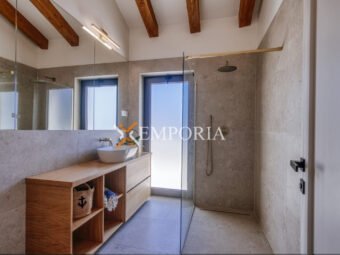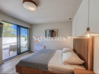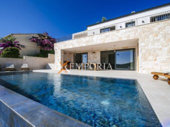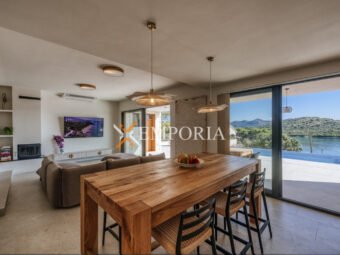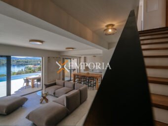 Zum Verkauf steht ein luxuriöser Neubau mit Pool auf Mali Iž, nur 90 m vom Meer und 450 m vom Ortszentrum entfernt. Das Haus befindet sich auf einem Grundstück von 761 m², die gesamte Innen- und Außenfläche beträgt 294,27 m². Besonderen Wert verleihen dieser Immobilie ein großer Überlaufpool von 31,85 m² mit Heizung sowie der herrliche, offene Meerblick. Direkt unterhalb des Hauses erstreckt sich ein Garten von ca. 400 m².