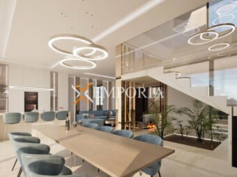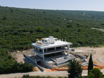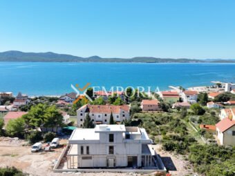 Zum Verkauf steht eine exklusive Luxusvilla in Sukošan, nur 200 m vom Meer und 2 km vom Ortszentrum entfernt. Auf einem Grundstück von 1.018 m² gelegen, vereint diese Villa Eleganz, Komfort und modernen Luxus mit ihrem imposanten Design und hochwertiger Ausstattung.