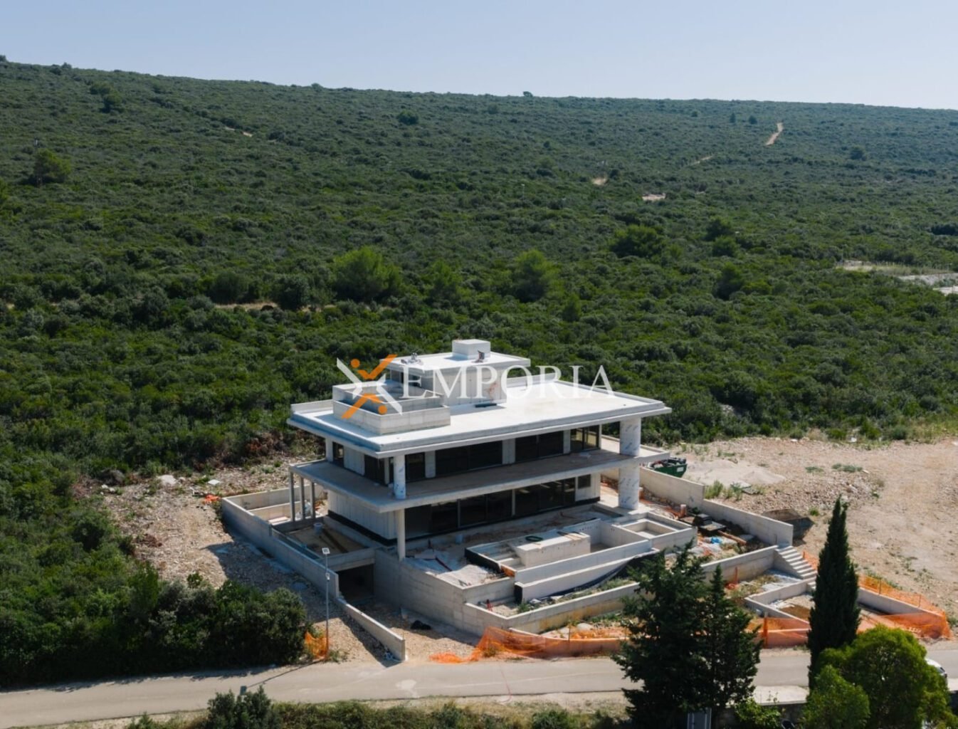 Die Villa ist aus massiven Betonwänden mit einer Fassade aus 10 cm Styropor-Isolierung erbaut, was Langlebigkeit und höchste Energieeffizienz garantiert. Elegante Aluminiumfenster mit Dreifachverglasung, Insektenschutzgittern und Vorhängen tragen zusätzlich zu einer hervorragenden Wärme- und Schalldämmung bei und schaffen ein Gefühl von Komfort und Luxus. Die Böden sind mit einer Kombination aus Fliesen und Parkett ausgestattet, während sicherheitsverstärkte Eingangstüren gegen Einbruch und Feuer zusätzlichen Schutz bieten. Der Wohnkomfort wird durch eine Fußbodenheizung mit Wärmepumpe gewährleistet, während jeder Raum über eine eigene Klimaanlage zur individuellen Temperaturregelung verfügt.
