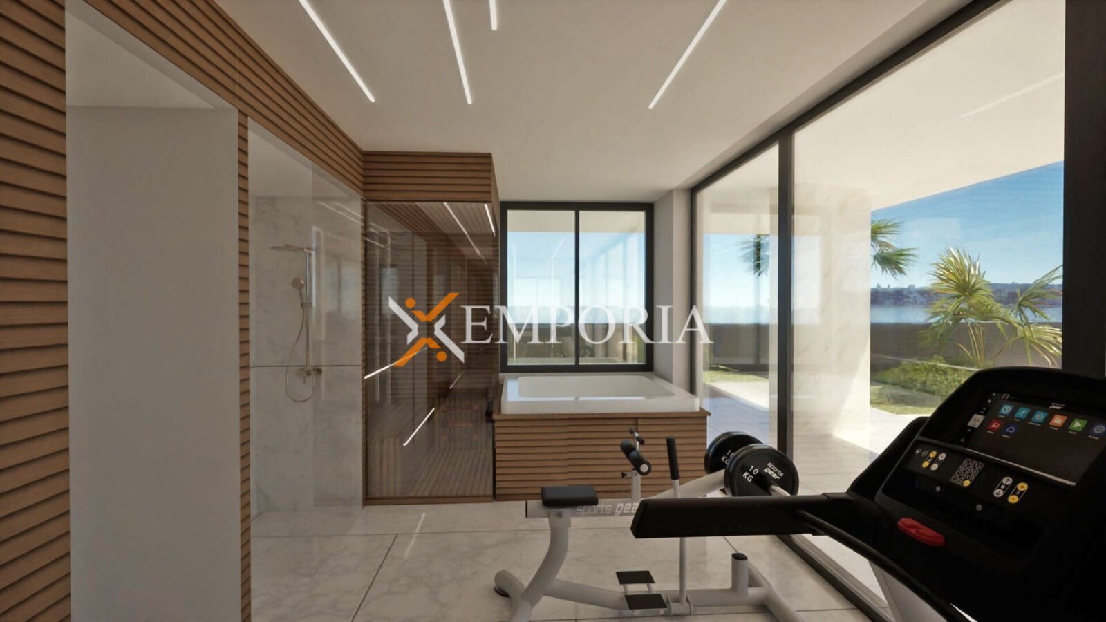 Die gesamte Beleuchtung ist in LED-Technologie ausgeführt, das Sicherheitssystem umfasst Videoüberwachung und eine Video-Gegensprechanlage mit App-Zugang. Die Garage ist mit Hormann-Toren sowie einer Ladestation für Elektrofahrzeuge ausgestattet. Die Villa wird vollständig möbliert verkauft, einschließlich luxuriösem Gaming Room, bestens ausgestattetem Fitnessraum, Sauna und Jacuzzi. Die Außenküche auf der Dachterrasse verfügt über eine große Theke, Grill und Kühlschrank und bietet damit das ideale Ambiente für unvergessliche Abende bei Sonnenuntergang.
