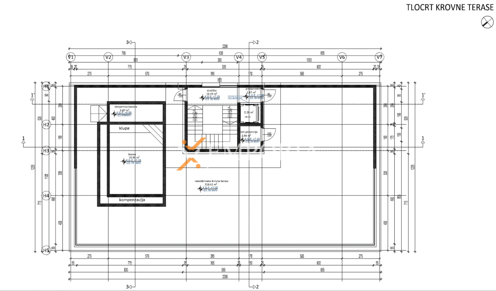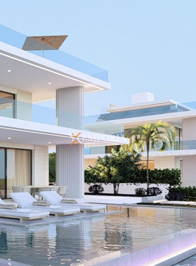 Die gesamte Bruttogrundfläche beträgt 851,54 m². Besonderen Wert verleihen der Immobilie zwei Swimmingpools: ein unterer Pool mit 42,50 m² sowie ein Dachpool mit 19,89 m², von dem aus sich ein wundervoller Meerblick eröffnet.