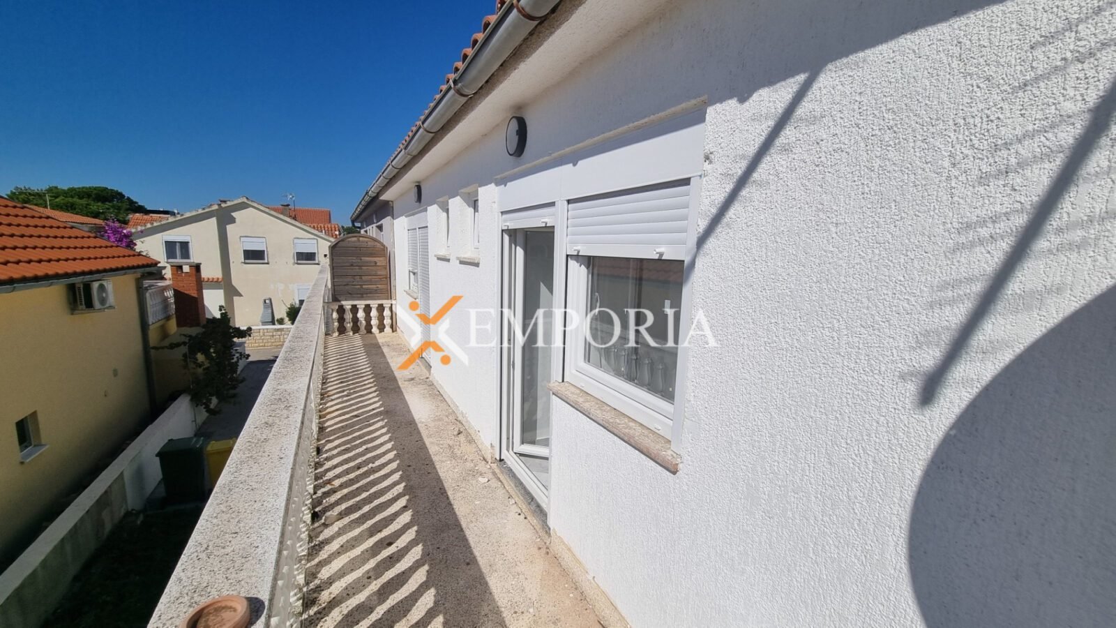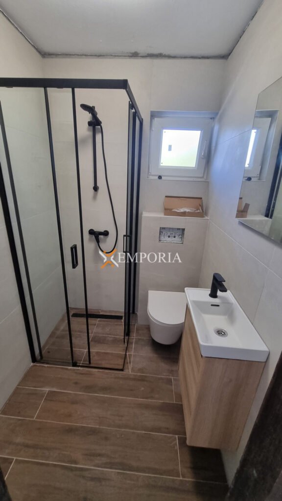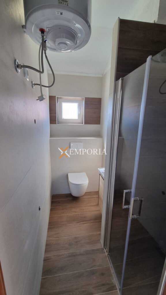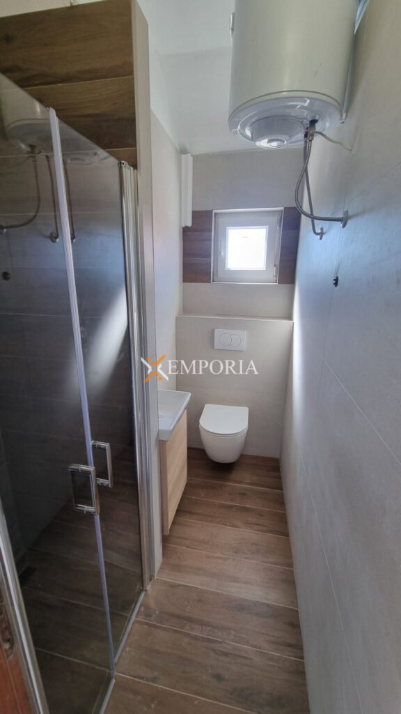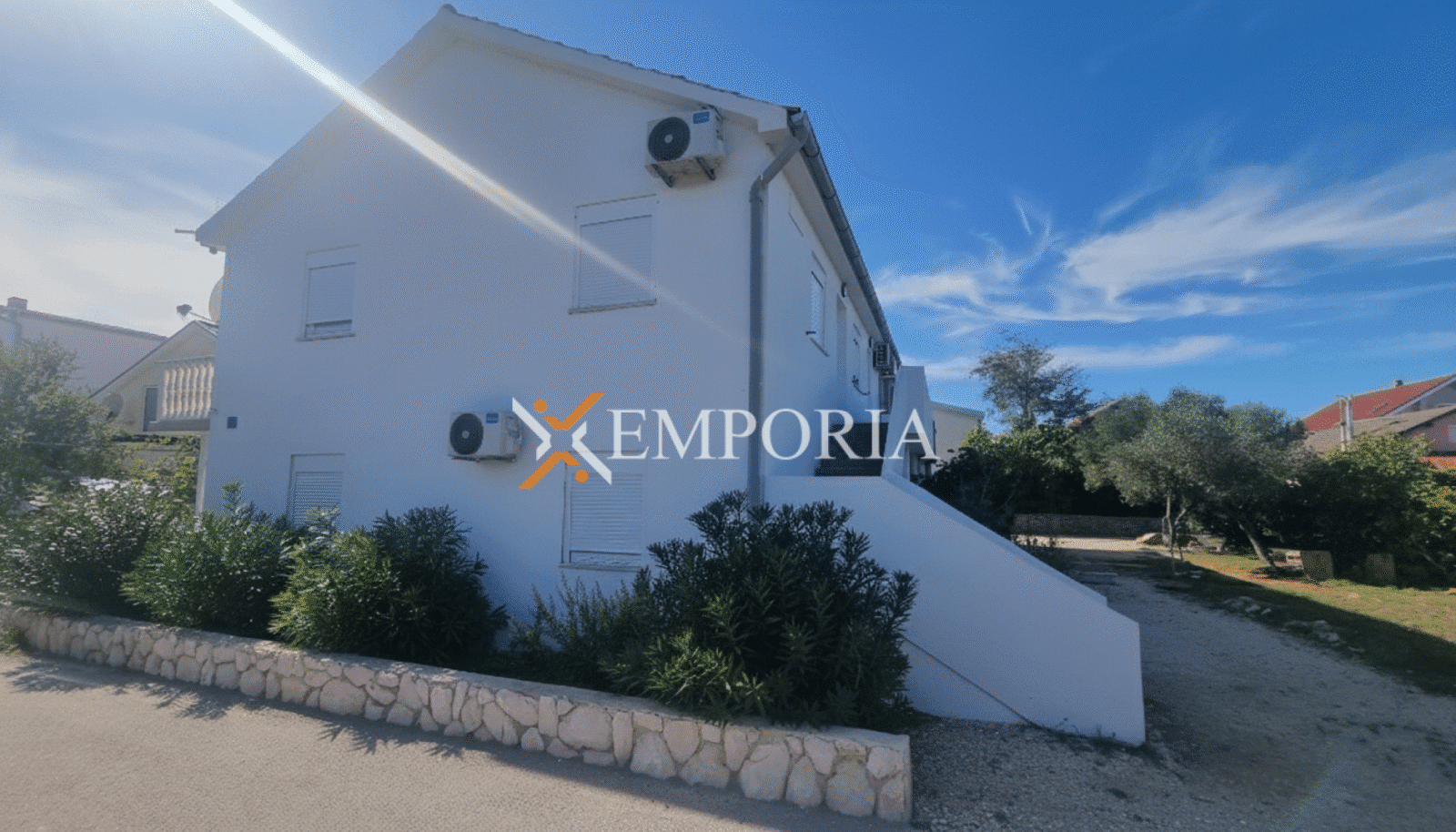 Zum Verkauf steht der östliche Teil eines Doppelhauses in Vir, nur 260 m vom Meer und 1,6 km vom Ortszentrum entfernt. Das Haus befindet sich auf einem Grundstück von 322 m², die gesamte Wohnfläche beträgt 178,39 m². Es besteht aus drei Wohneinheiten, die sich auf das Erdgeschoss und das Dachgeschoss verteilen.