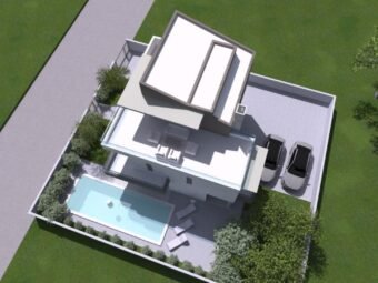 Zum Verkauf steht ein modernes Neubauhaus in Zaton, ruhig gelegen, nur 210 m vom Meer und 450 m vom Ortszentrum entfernt. Diese Immobilie überzeugt durch zeitgemäße Architektur, hochwertige Bauweise und einen funktionalen Grundriss und eignet sich ideal zum Wohnen, für den Urlaub oder als Investition.