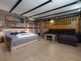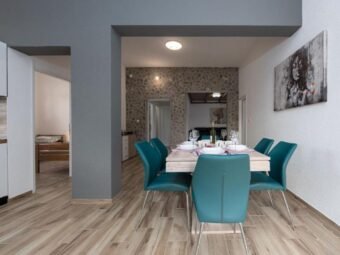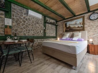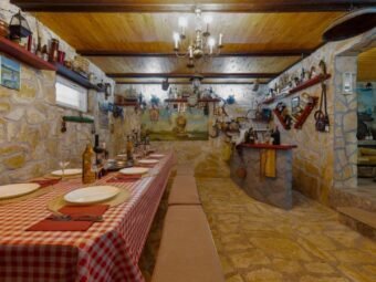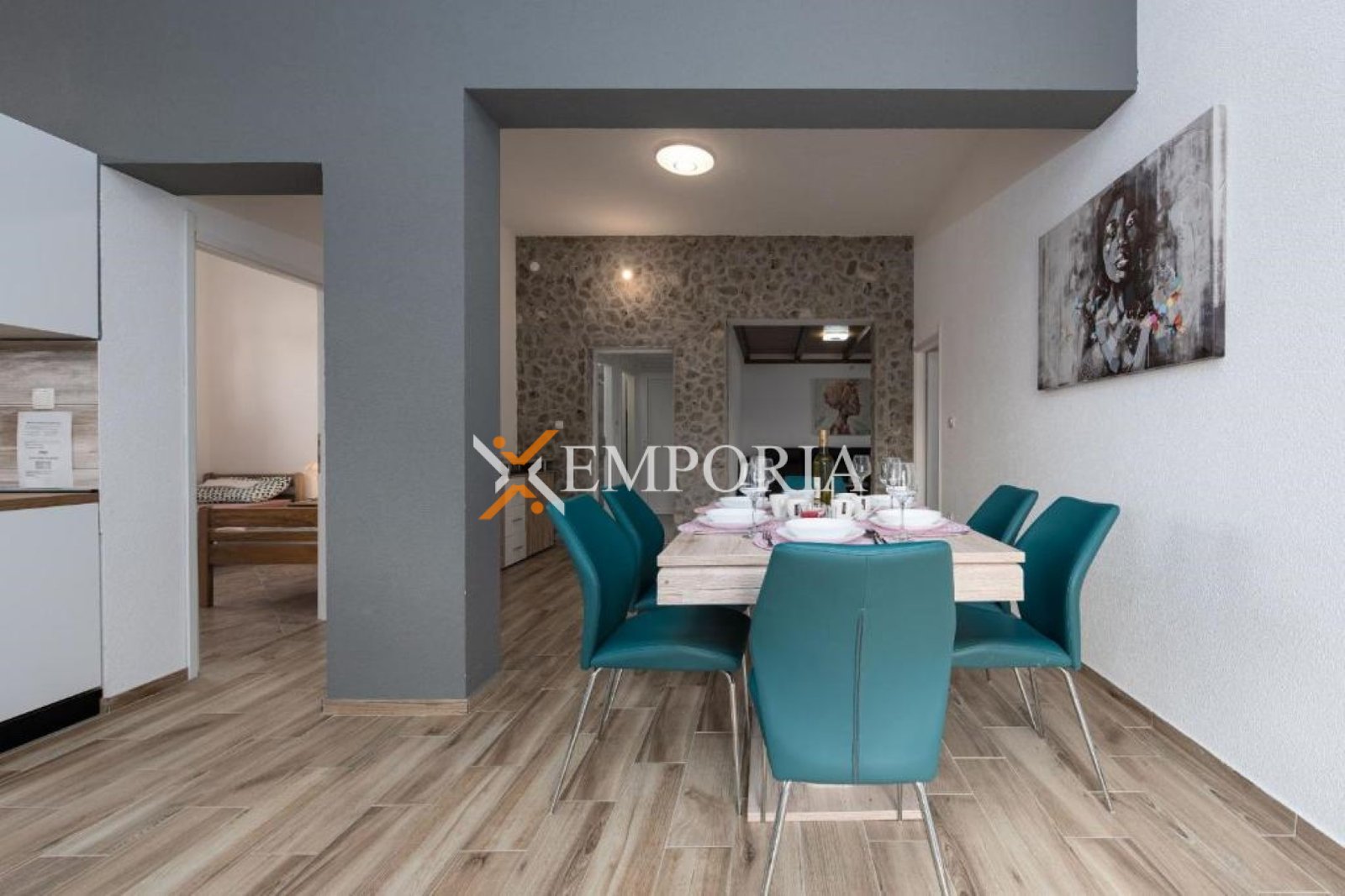 Das Haus erstreckt sich über mehrere Ebenen und umfasst einen Keller, ein Erdgeschoss, den ersten und den zweiten Stock. Im Keller befindet sich eine traditionelle Konoba mit Küche sowie ein Weinlagerraum mit einer Fläche von ca. 48 m², während die gesamte Kellerfläche rund 120 m² beträgt. Das Erdgeschoss, der erste und der zweite Stock bestehen jeweils aus einer Drei-Schlafzimmer-Wohnung mit einer Fläche von ca. 120 m² pro Etage. Im Hof befinden sich zusätzlich zwei freistehende Häuser, eines mit 50 m² als Ein-Schlafzimmer-Apartment und ein weiteres mit 30 m² als Studio-Apartment. Die gesamte Wohnfläche aller Gebäude beträgt ca. 560 m².