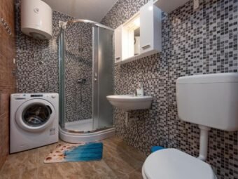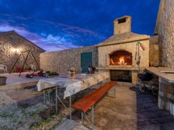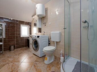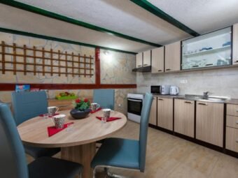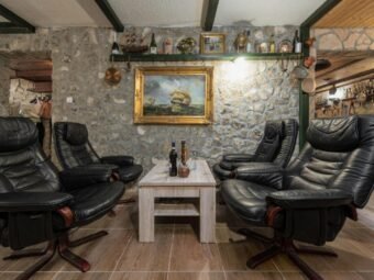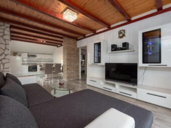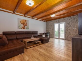 Die Immobilie wird möbliert verkauft. Die Beheizung im ersten Stock erfolgt über einen Holzofen, während in allen Wohnungen sowie in beiden kleineren Häusern Klimageräte installiert sind, insgesamt fünf Einheiten. Das Haus ist aus Ziegel gebaut, verfügt über PVC- und Aluminiumfenster mit Aluminium-Fensterläden sowie über einen Kamin. Die Böden sind mit Fliesen und Laminat ausgestattet, das Dach ist geneigt. Zwei Außengrills stehen zur Verfügung, einer im Hof und einer in der Konoba im Keller.