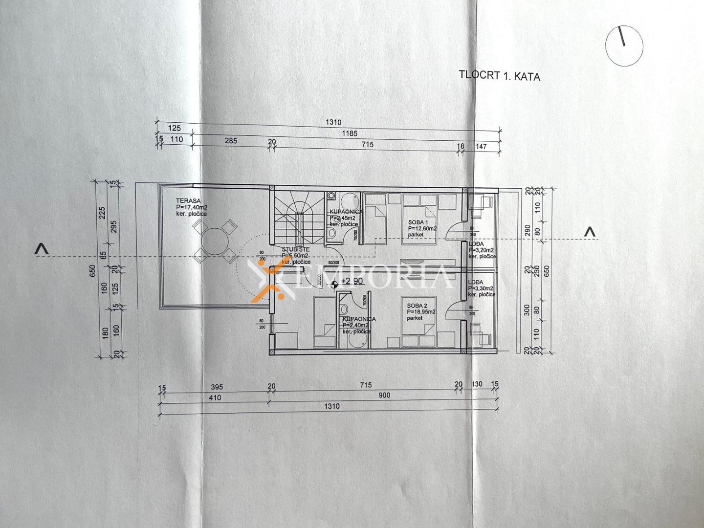 Im ersten Stock befinden sich eine Einzimmerwohnung und ein Studio-Apartment mit einer Gesamtfläche von 65,80 m².