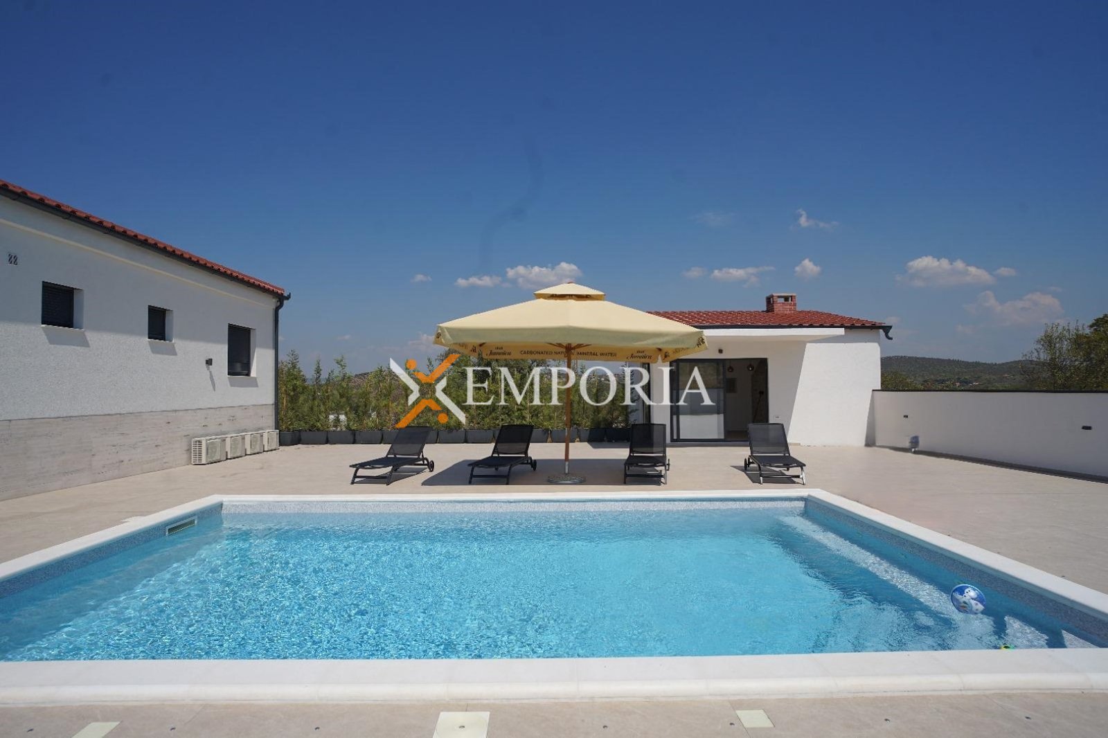 Das Haus wird möbliert verkauft. Es verfügt über 4 Klimaanlagen. Es wurde aus Ziegel-Thermoblock gebaut, während die Fassade eine 10 cm Styropor-Dämmung hat. Die Fenster sind PVC-Fenster mit Rollläden, Moskitonetzen und Dreifachverglasung. Die Böden sind mit Fliesen belegt. Das Haus verfügt über einen Schornstein.