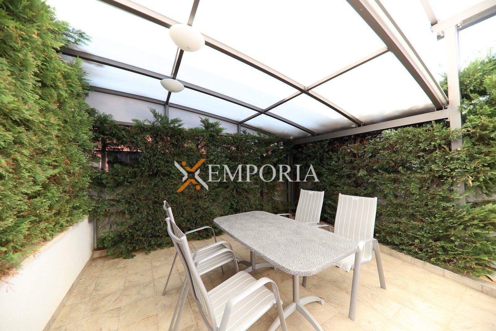 Es sind Aluminiumfenster mit Rollläden und Insektenschutzgittern verbaut. Die Fassade ist mit 10 cm Styropor isoliert. Die Beheizung und Kühlung des gesamten Hauses, mit Ausnahme der Badezimmer, erfolgt über ein modernes Wärmepumpensystem.