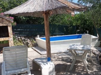 Zum Haus gehören ein Garten, zwei Stellplätze sowie ein Betonpool mit einer Fläche von 8,70 m2. Zusätzlich steht ein Außen-Grill zur Verfügung.