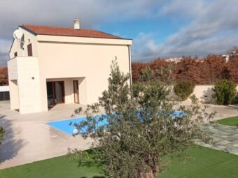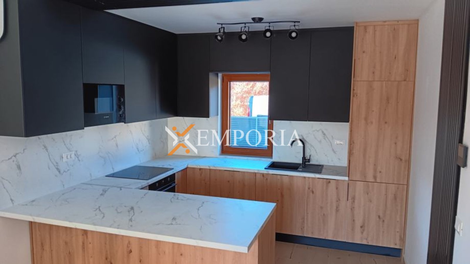 Zum Verkauf steht ein modernes Neubauhaus in Murvica, in ruhiger Lage, 450 m vom Zentrum und 7,3 km vom Meer entfernt. Die Immobilie bietet eine funktionale Raumaufteilung und Privatsphäre und eignet sich ideal für das Familienleben oder als Investition.