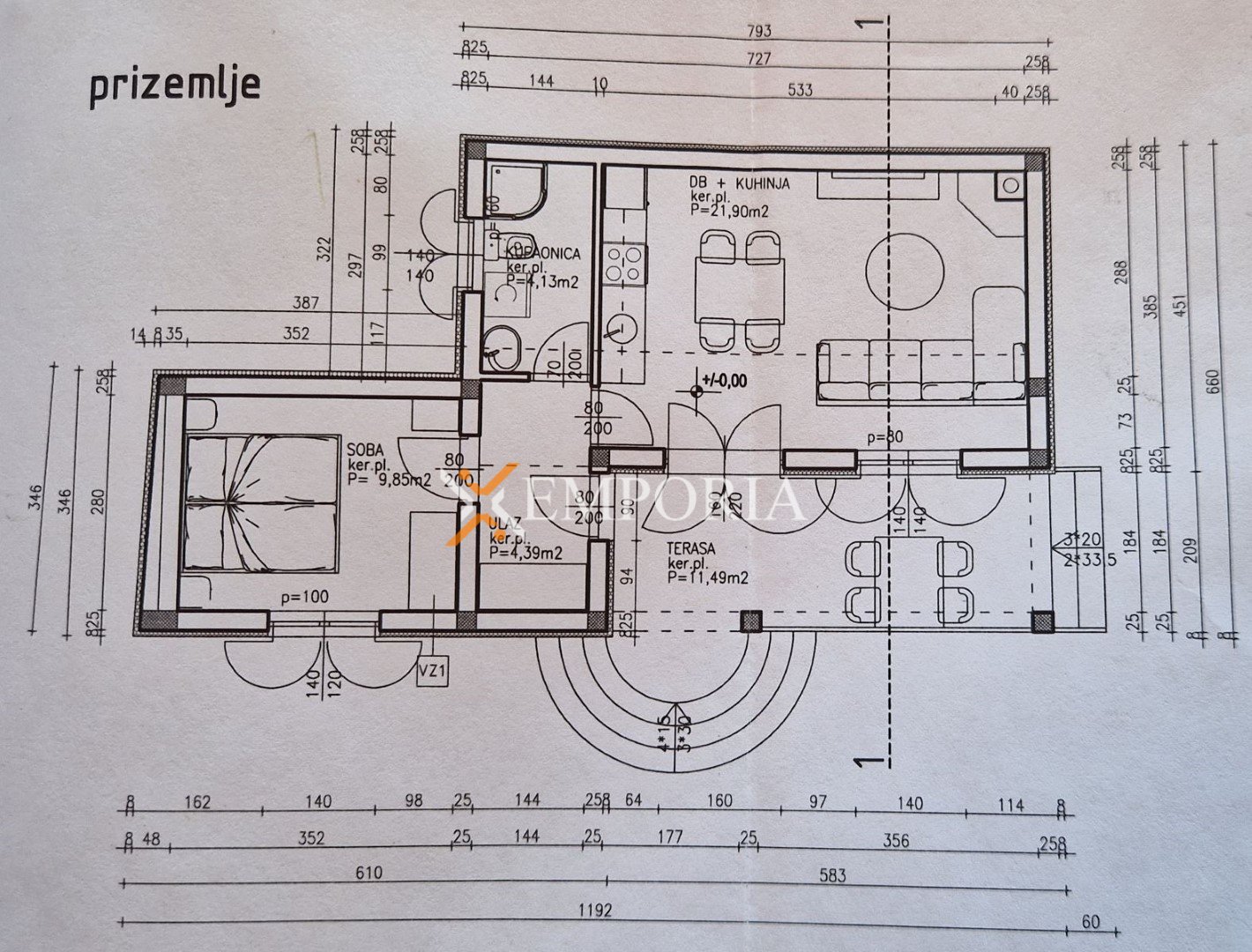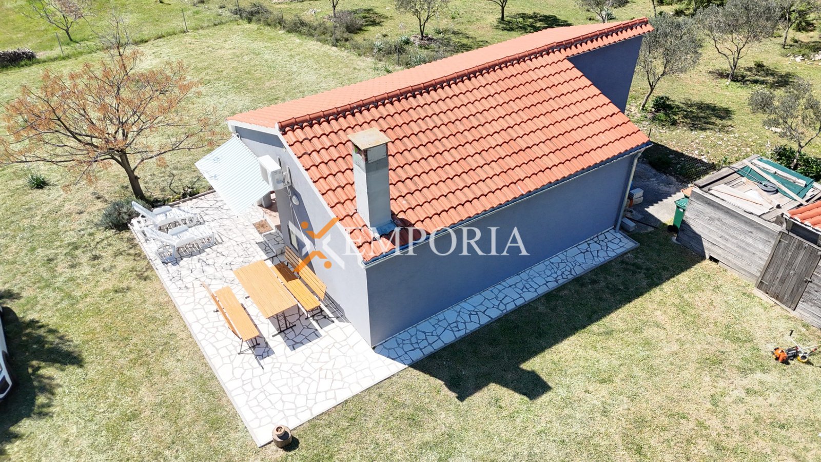 Zum Verkauf steht ein Haus in Raštane Gornje, in ruhiger Lage, 5,7 km vom Meer und 1,4 km vom Zentrum entfernt. Die Immobilie befindet sich auf einem großen Grundstück mit einer Gesamtfläche von 3943 m2, davon ca. 1660 m2 Bauland und ca. 2280 m2 landwirtschaftliche Fläche.