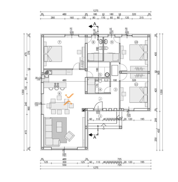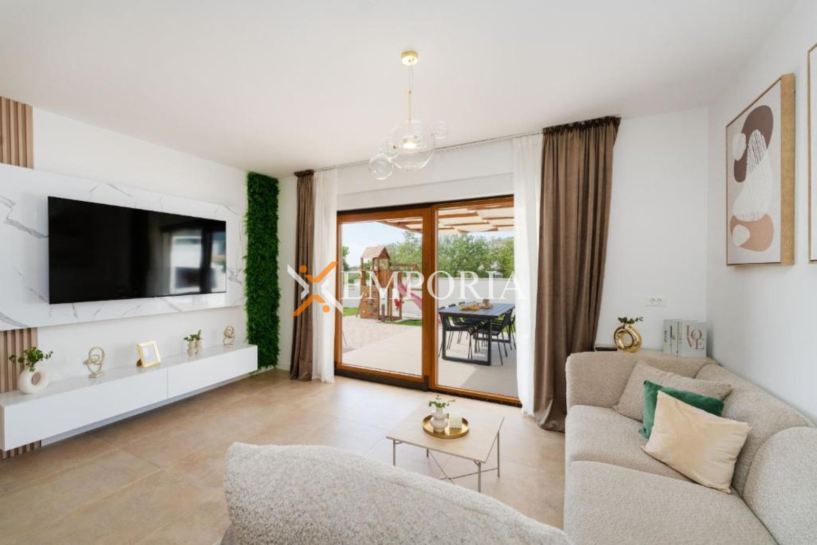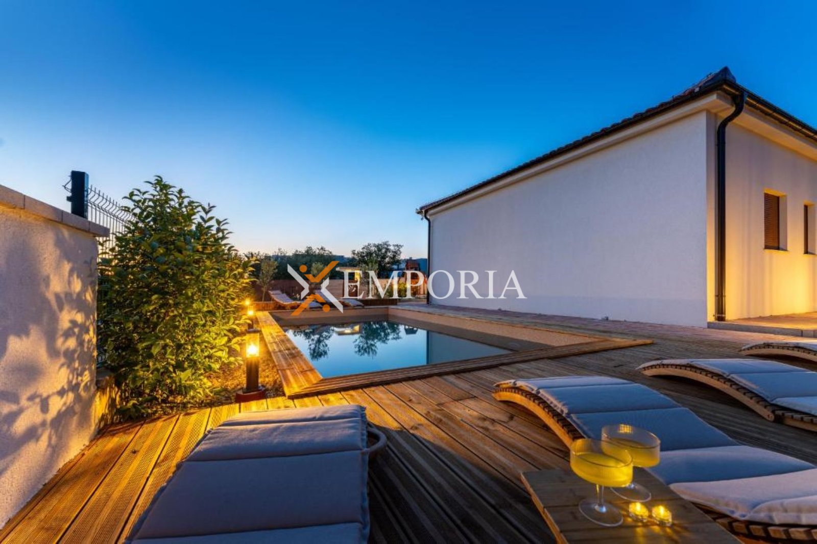 Zum Verkauf steht ein modernes Neubauhaus in Murvica, in ruhiger Lage, nur 300 m vom Zentrum und 7,5 km vom Meer entfernt. Die Immobilie bietet eine funktionale Raumaufteilung und hohen Wohnkomfort und eignet sich ideal für das Familienleben oder als Investition.