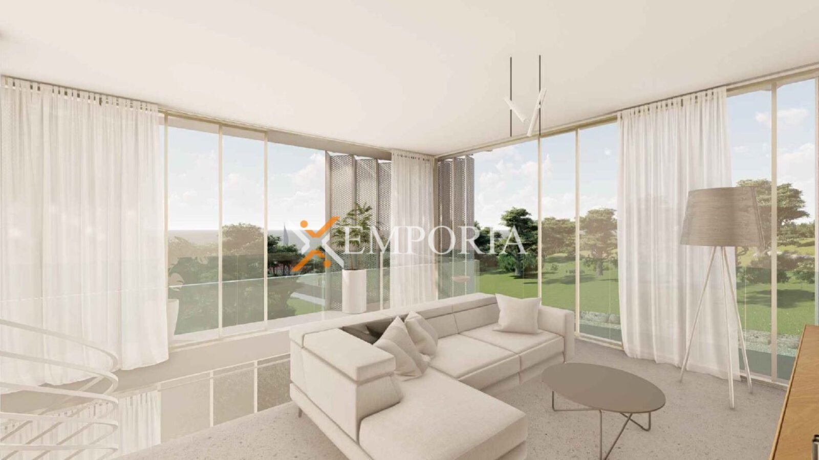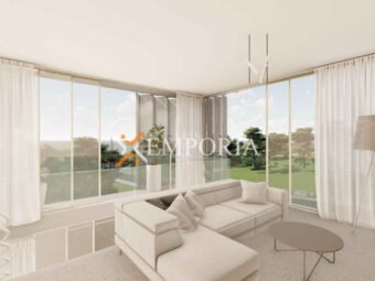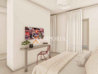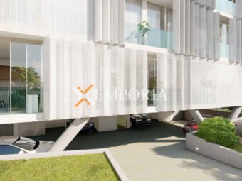 Konstruktion mit Betonwand und gemauertem Thermoblock. Die Bodenbeläge sind Fliesen und Parkett. Als Wärmedämmung wird an der Fassade Styropor mit einer Dicke von 8 cm angebracht. Die Fenster sind aus Aluminium mit Moskitonetzen und Rollläden. In der gesamten Wohnung ist eine wassergeführte Fußbodenheizung über Wärmepumpen installiert. Die Räumlichkeiten werden über Deckengeräte, ebenfalls über Wärmepumpen, klimatisiert. Darüber hinaus ist die Eingangstür der Wohnung einbruchsicher und feuerfest.