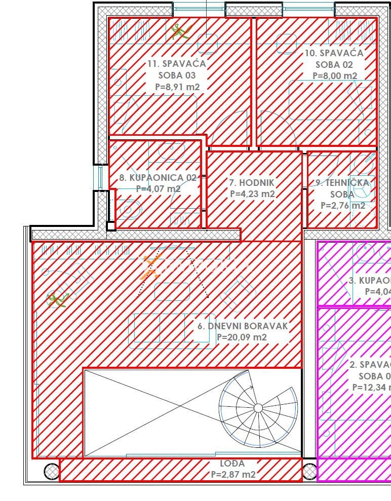 Zweistöckige Wohnung zum Verkauf in Diklo, Zadar. Es handelt sich um einen modernen Neubau, dessen Bezug für Ende 2026 geplant ist. Die Lage dieser Immobilie ist sehr schön, 650 m vom Meer und Strand entfernt, ruhige und grüne Umgebung. Die Wohnung hat teilweise Meerblick.