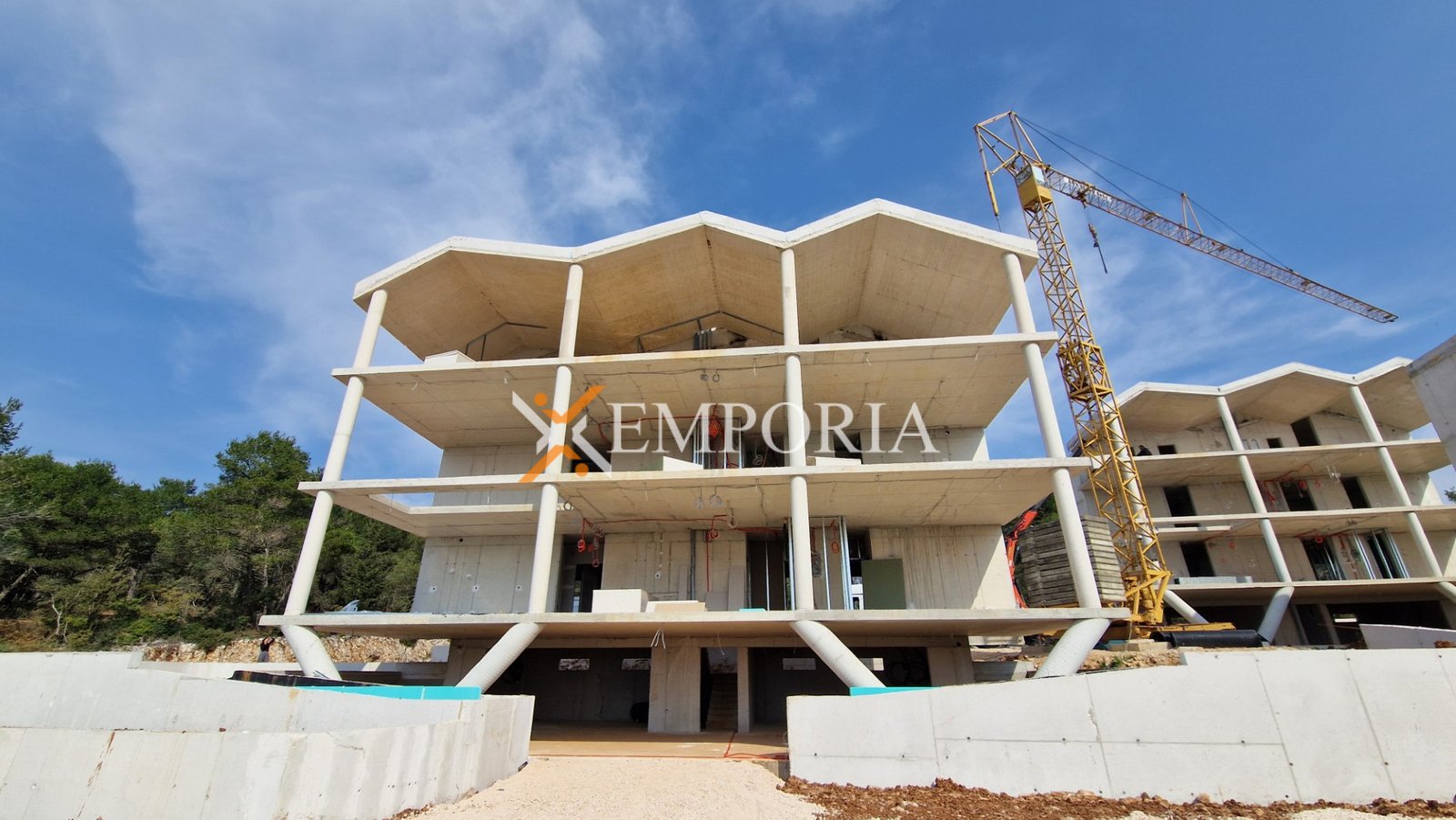 Wohnung zum Verkauf im ersten Stock in Diklo, Zadar. Es handelt sich um einen modernen Neubau, dessen Bezug für Ende 2026 geplant ist. Die Lage des Anwesens ist ausgezeichnet, 650 m vom Meer und Strand entfernt, ruhige und grüne Umgebung. Die Wohnung hat teilweise Meerblick.