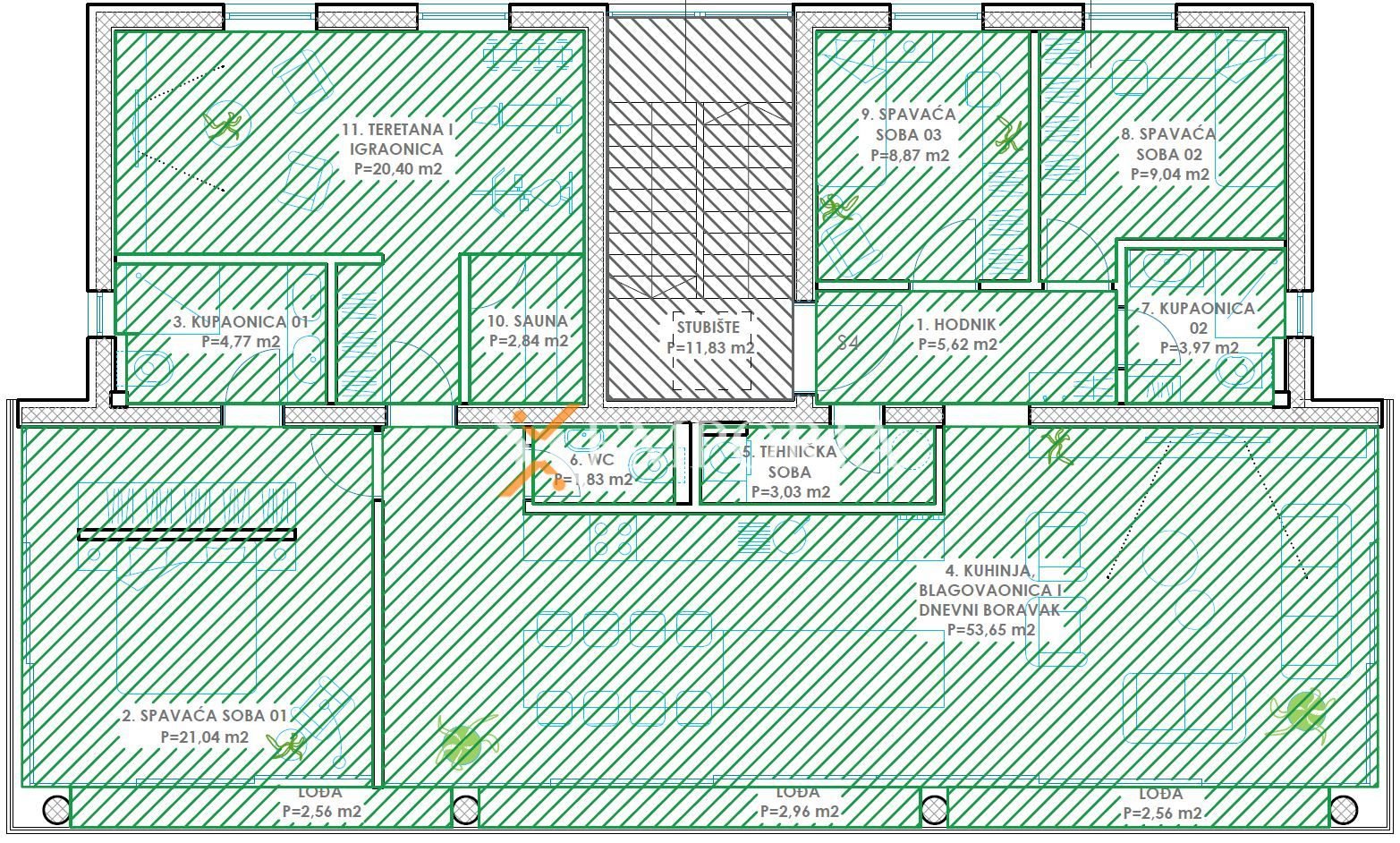 Penthouse – Wohnung zum Verkauf in Diklo, Zadar. Es handelt sich um einen modernen Neubau, dessen Bezug für Ende 2026 geplant ist. Die Lage des Anwesens ist ausgezeichnet, 650 m vom Meer und Strand entfernt, ruhige und grüne Umgebung. Die Wohnung hat einen Meerblick.