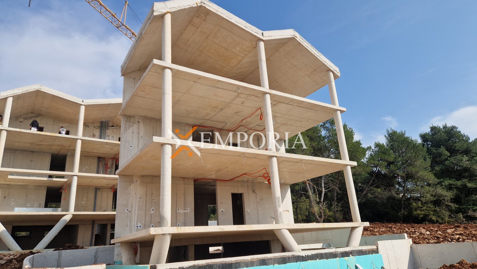 Wohnung zum Verkauf im Erdgeschoss in Diklo, Zadar. Es handelt sich um einen modernen Neubau, dessen Bezug für Ende 2026 geplant ist. Die Lage des Anwesens ist ausgezeichnet, 650 m vom Meer und Strand entfernt, ruhige und grüne Umgebung. Die Wohnung hat teilweise Meerblick.