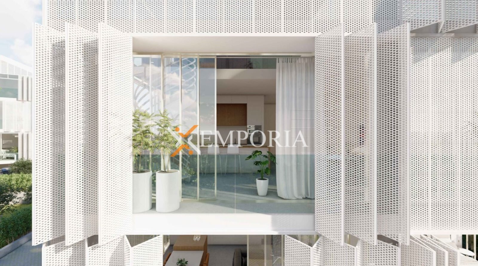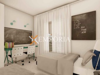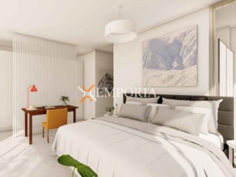 Konstruktion mit Betonwand und gemauertem Thermoblock. Die Bodenbeläge sind Fliesen und Parkett. Als Wärmedämmung wird an der Fassade Styropor mit einer Dicke von 8 cm angebracht. Die Fenster sind aus Aluminium mit Moskitonetzen und Rollläden. In der gesamten Wohnung ist eine wassergeführte Fußbodenheizung über Wärmepumpen installiert. Die Räumlichkeiten werden über Deckengeräte, ebenfalls über Wärmepumpen, klimatisiert. Darüber hinaus ist die Eingangstür der Wohnung einbruchsicher und feuerfest.