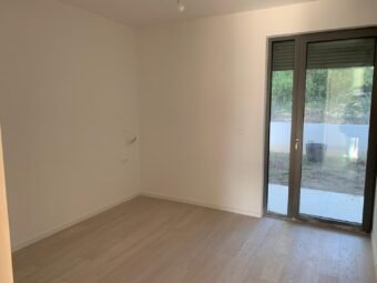 Es handelt sich um eine Wohnung im Erdgeschoss des Gebäudes. Die Raumaufteilung besteht aus einem Flur, zwei Bädern, drei Schlafzimmern, einer Küche mit Esszimmer und Wohnzimmer, einer Loggia, einer überdachten Terrasse und einer teilweise überdachten Terrasse. Die Nettonutzfläche der beschriebenen Räumlichkeiten beträgt 111,97 m2.