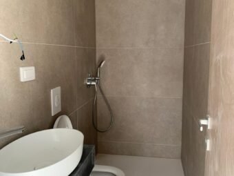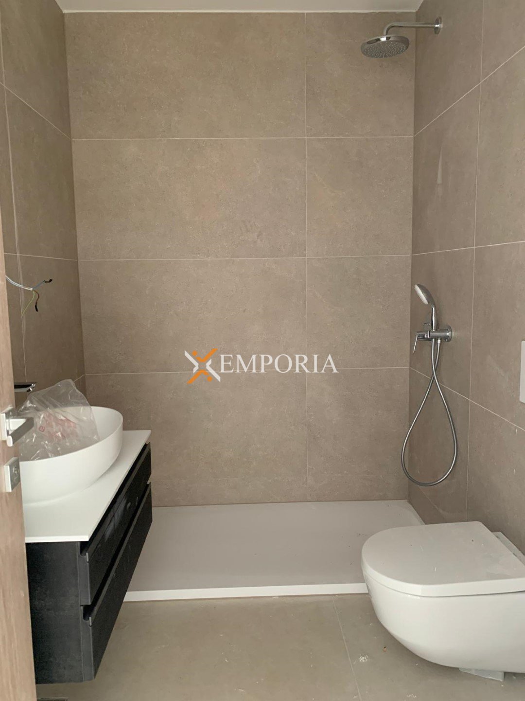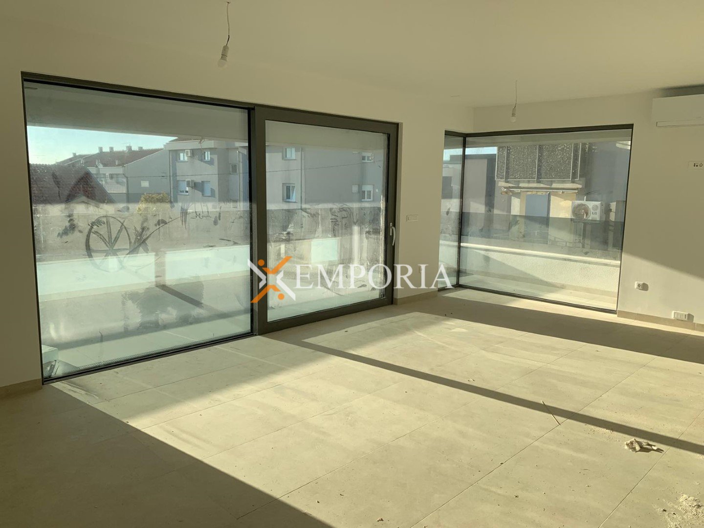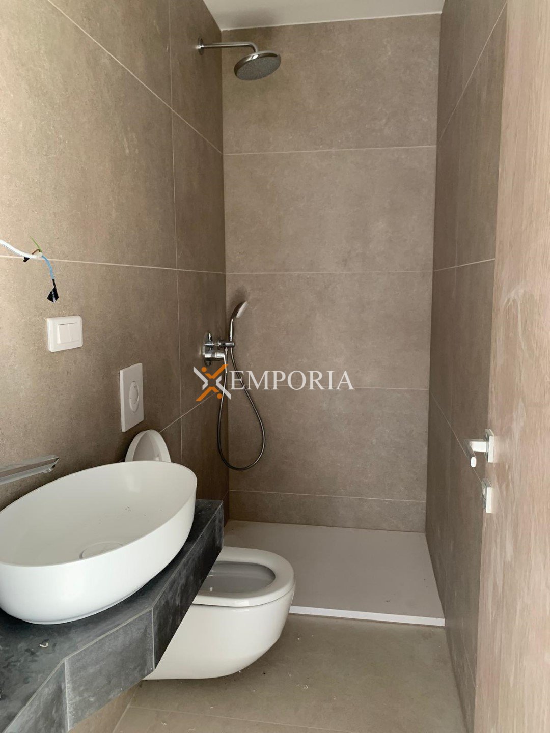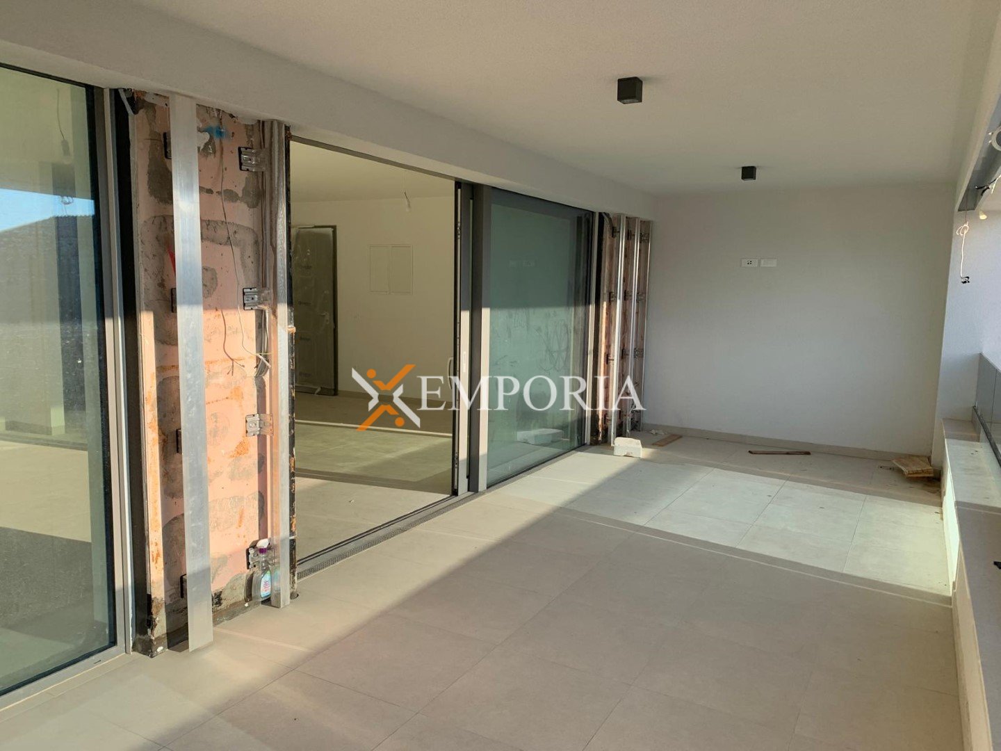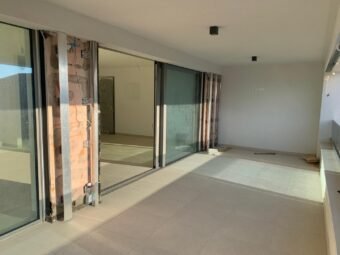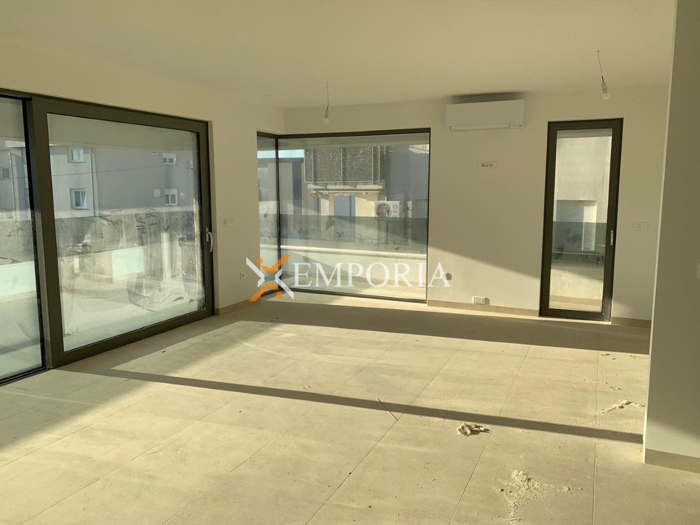 Es handelt sich um eine Wohnung im 1. Stock des Gebäudes. Die Raumaufteilung besteht aus einem Flur, zwei Bädern, drei Schlafzimmern, einer Küche mit Esszimmer und Wohnzimmer, einer Loggia, einer überdachten Terrasse und einer nicht überdachten Terrasse. Die Nettonutzfläche der beschriebenen Räumlichkeiten beträgt 105,90 m2.