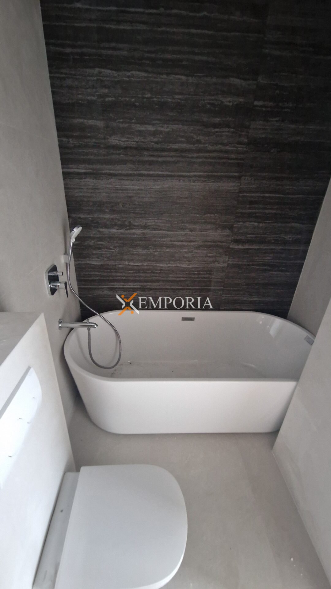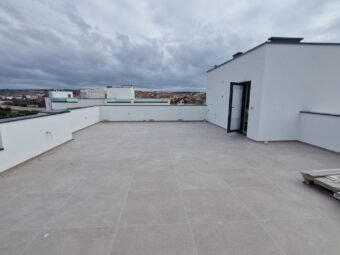Die Raumaufteilung besteht aus einem Flur, zwei Schlafzimmern, einem Schlafzimmer mit Badezimmer, einem Badezimmer, einem WC, einer Küche mit Essbereich und Wohnzimmer sowie einer Loggia (95,30 m2 netto). Vom Treppenhaus gelangt man auf eine Dachterrasse mit einer Fläche von 106,63 m2. Die netto Nutzfläche der beschriebenen Räume beträgt 121,96 m2.